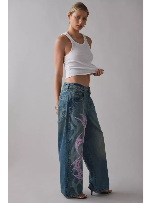 Süper Düşük Kalp Cepli Paçalı Kot Pantolon