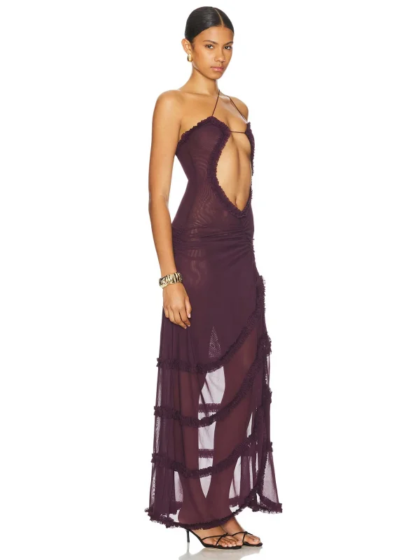 JD Açık Sırtlı Halter Yaka Mini Elbise – File Detaylı, Payet Aksesuarlı Şık Tasarım