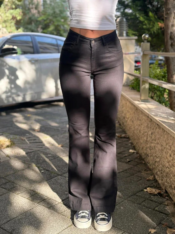 Düşük Bel İspanyol Paça Kadife Çift Dikişli Flare Pantolon