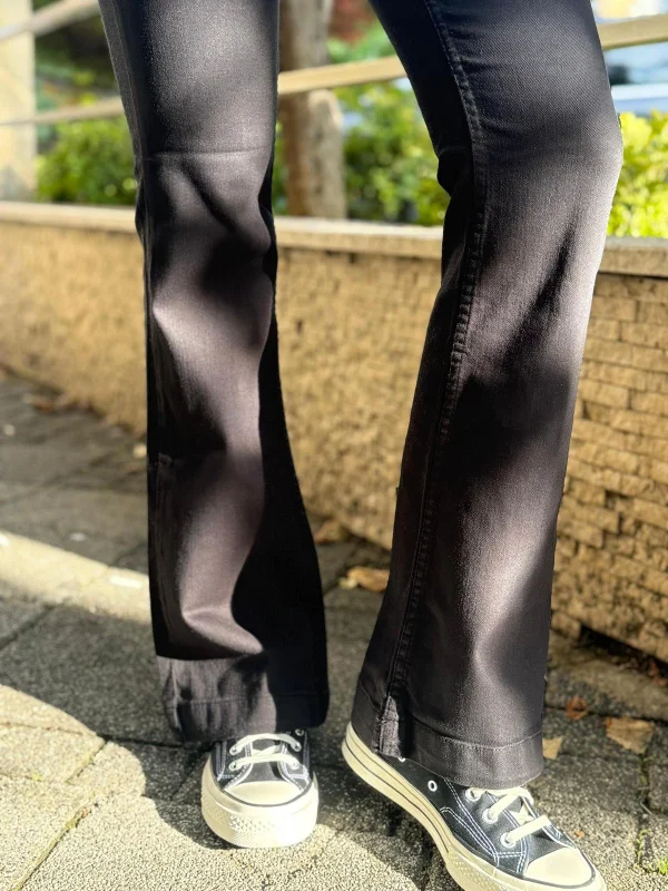CKL Marka Muadili Logo Detaylı Siyah Saten Görünümlü Palozzo Pantolon