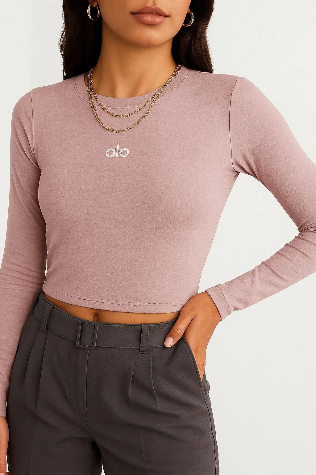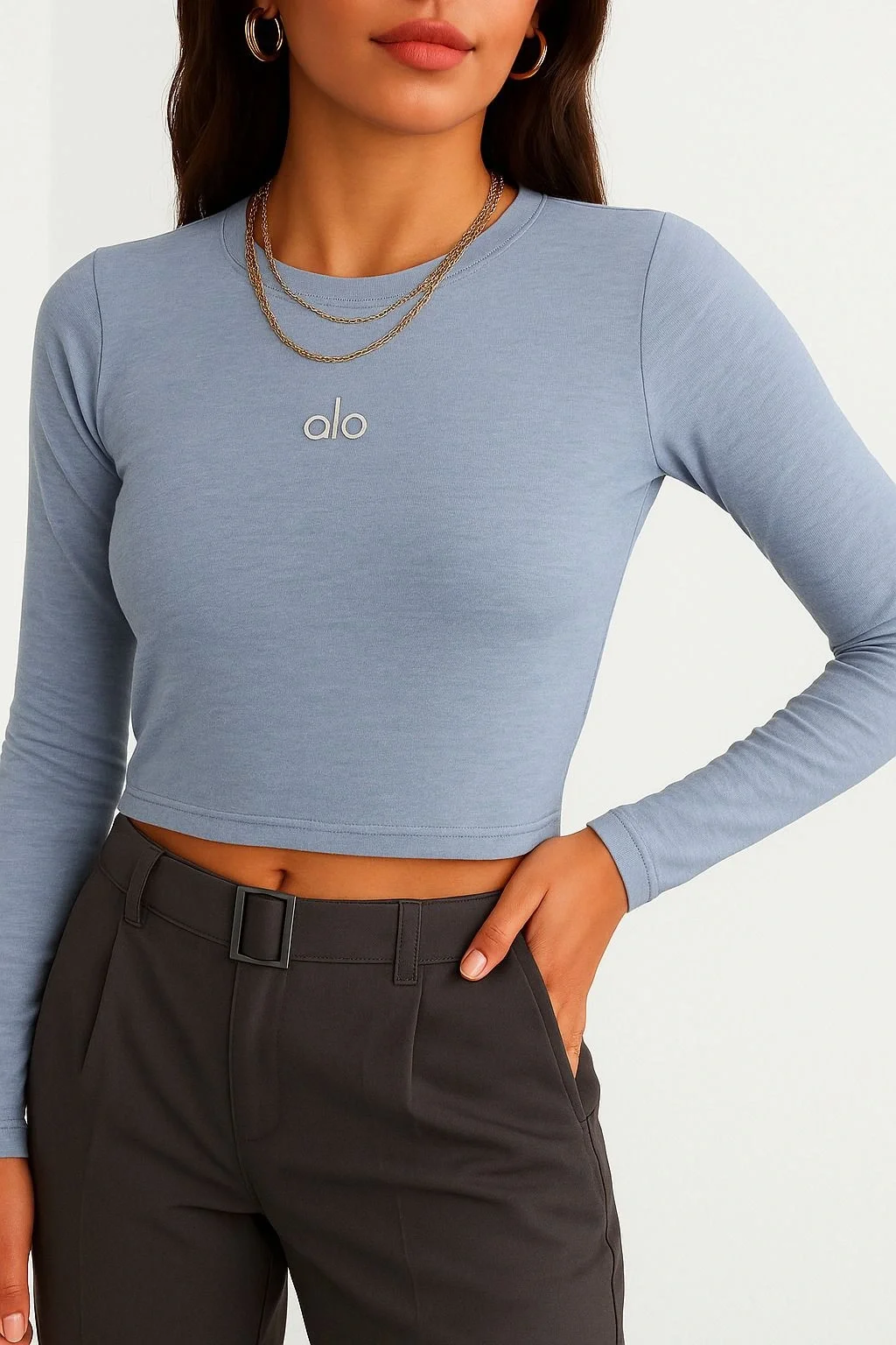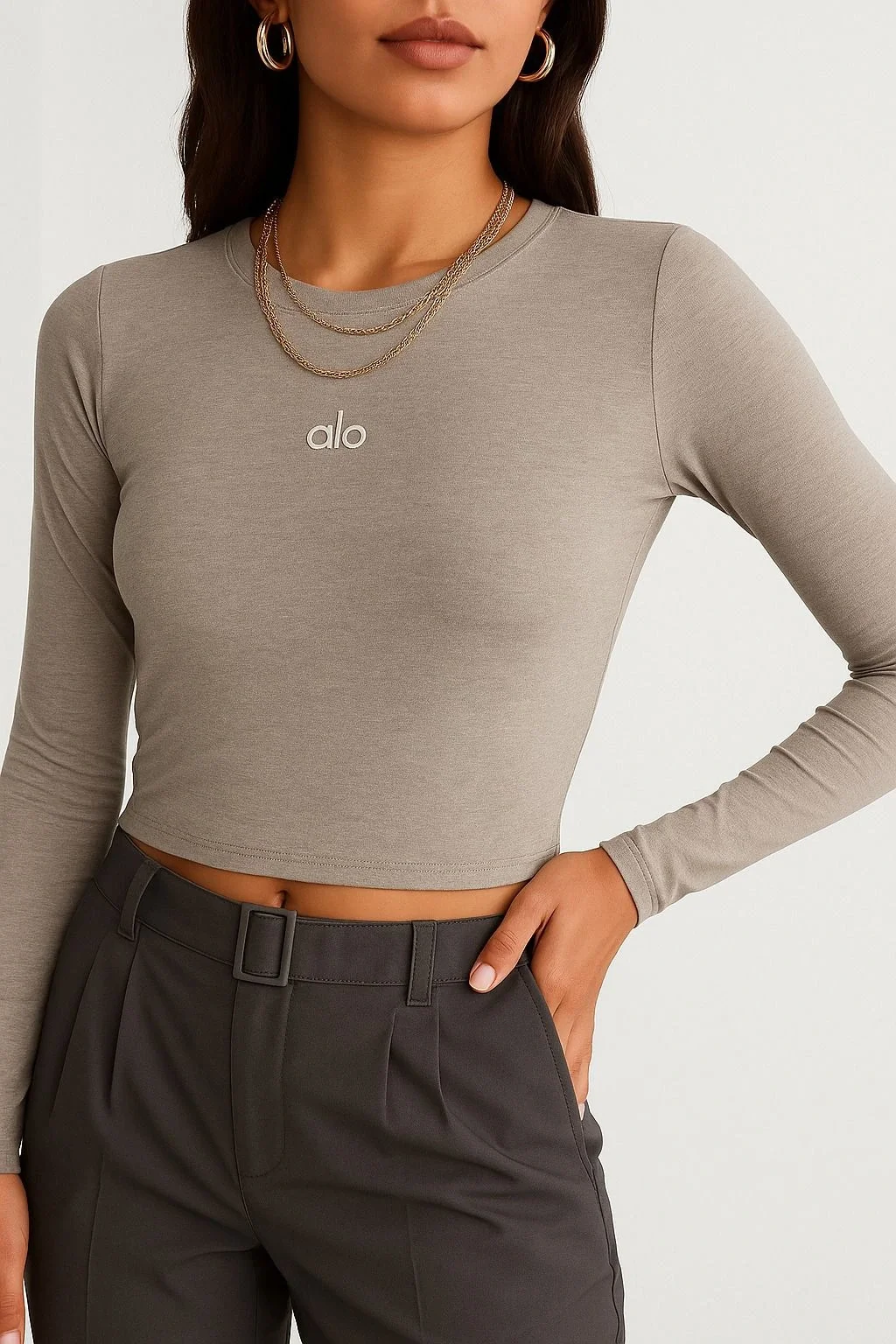VibeGaia markasının kadın yumuşak dokulu bisiklet yaka uzun kollu basic tişört-bluzunu keşfedin! Bu şık ve rahat tişört, günlük giyimde ve spor aktivitelerde kullanım için idealdir.