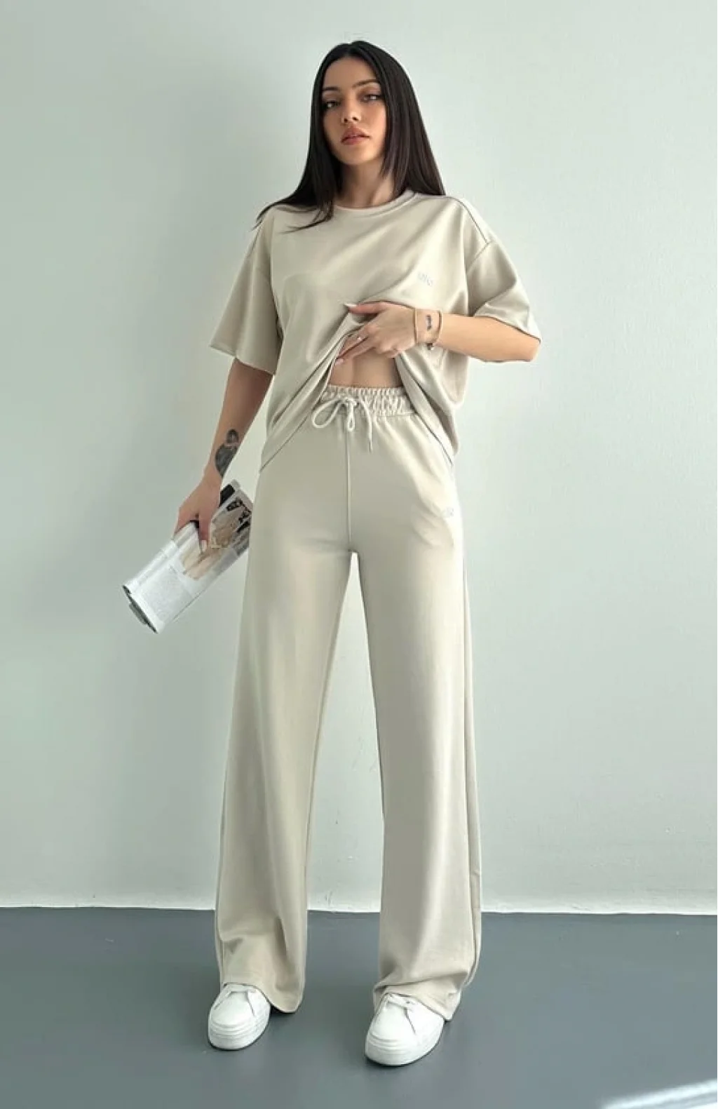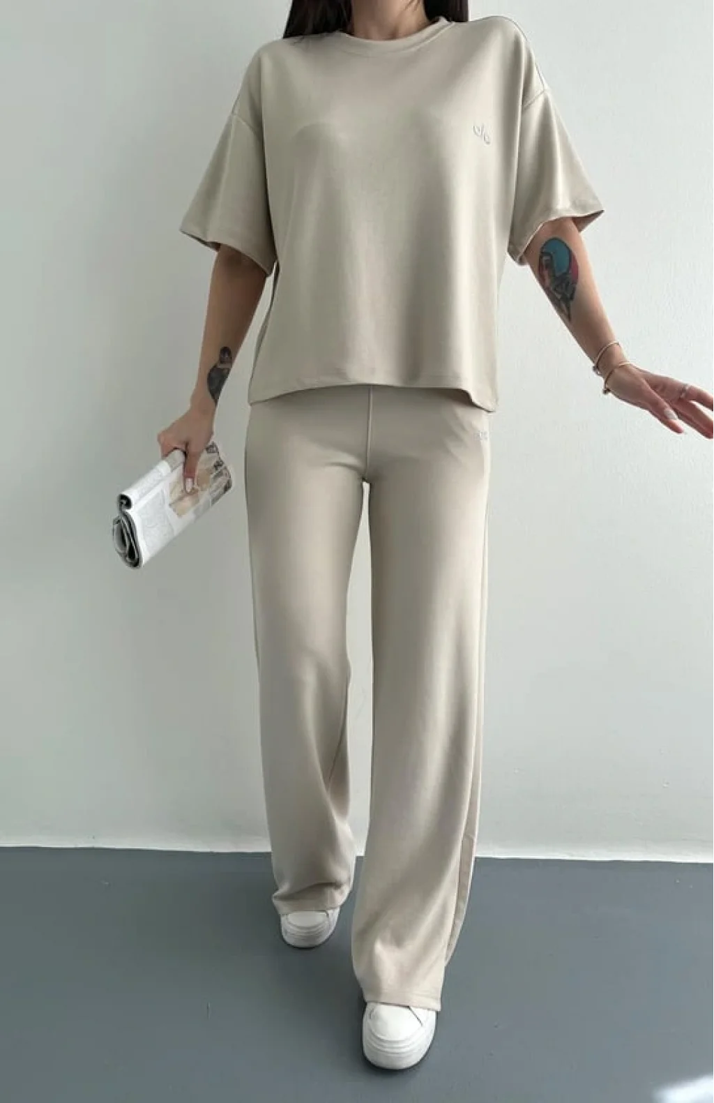 Ao Baskılı Modal Bol Paça Eşofman Altı Pantolon, spor yaparken rahatlığınızı ve şıklığınızı bir arada sunar.