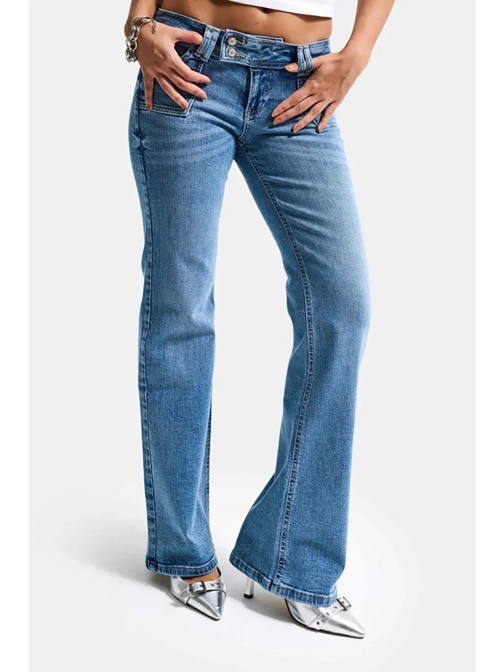 Düşük Bel Cep Detaylı Bootcut Jean