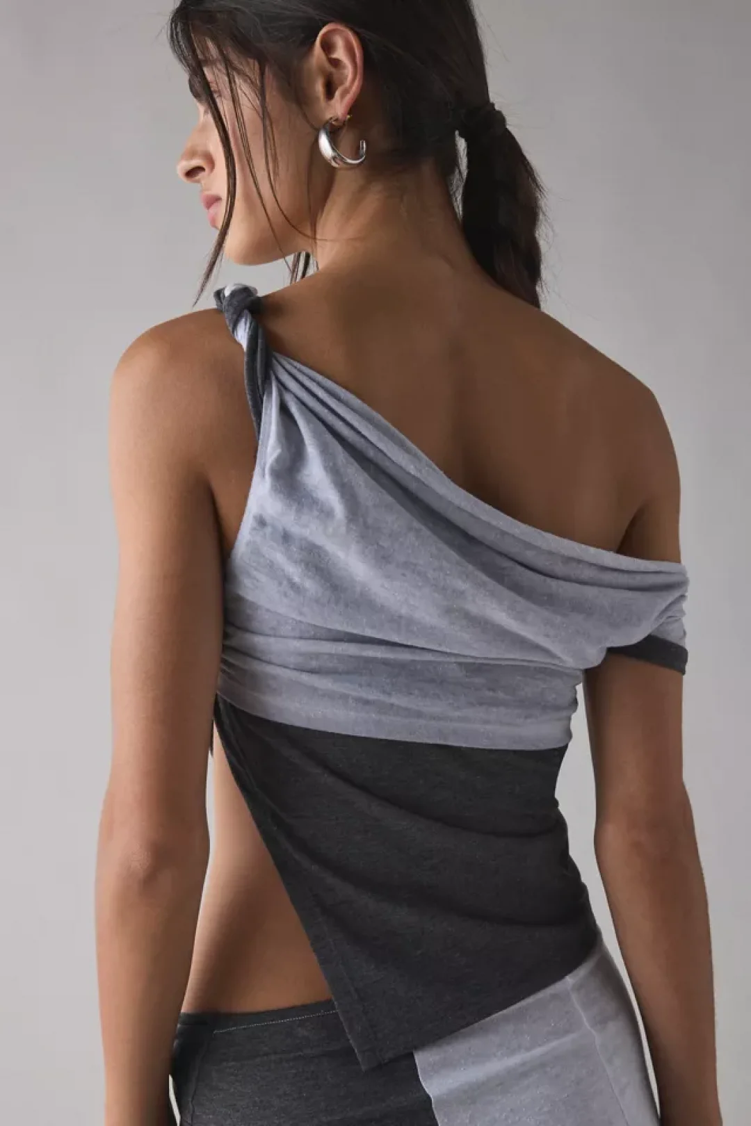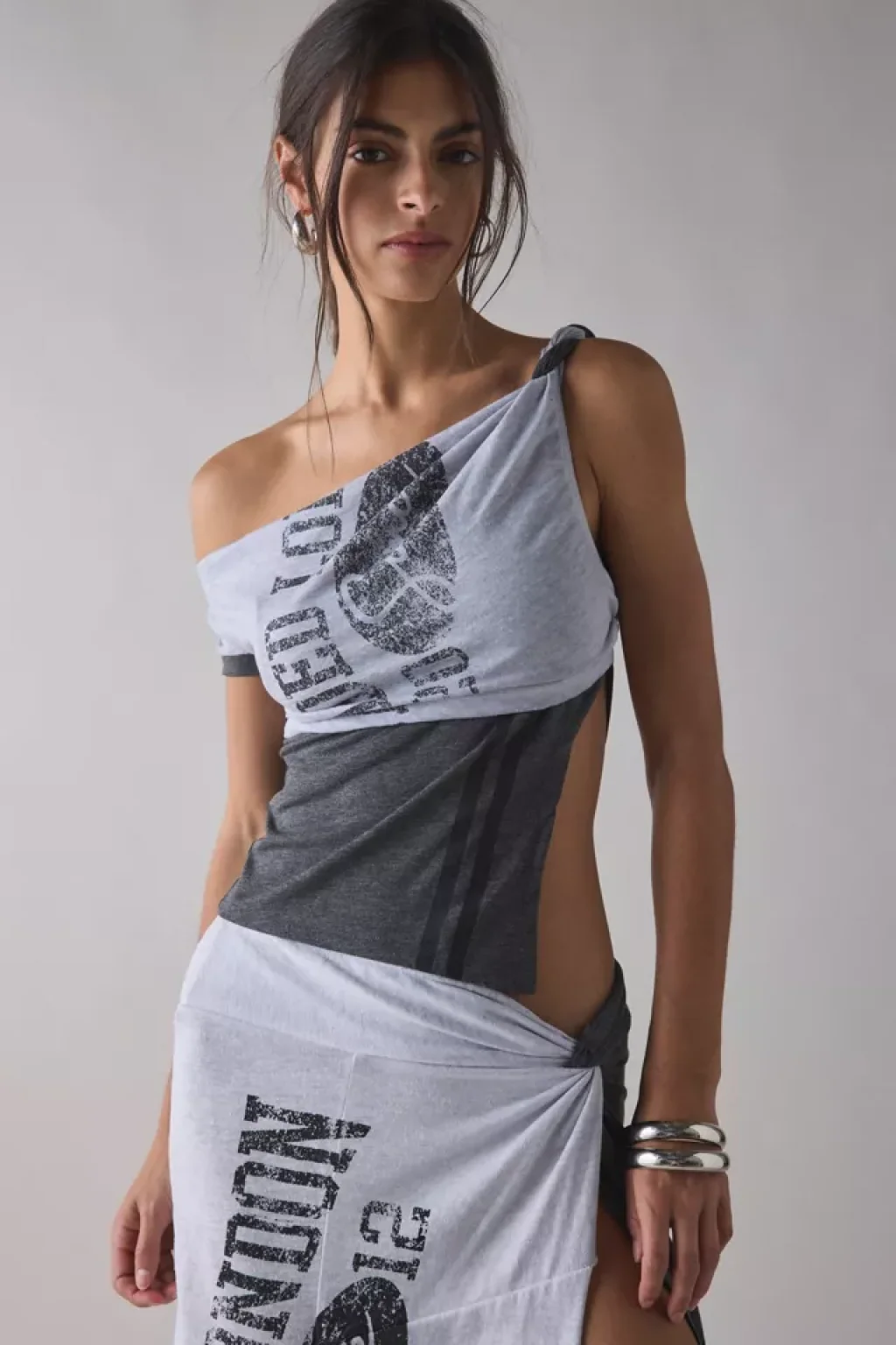 Asimetrik ve “spliced” (iki farklı t-shirt’ün birleştirilmiş) tasarım