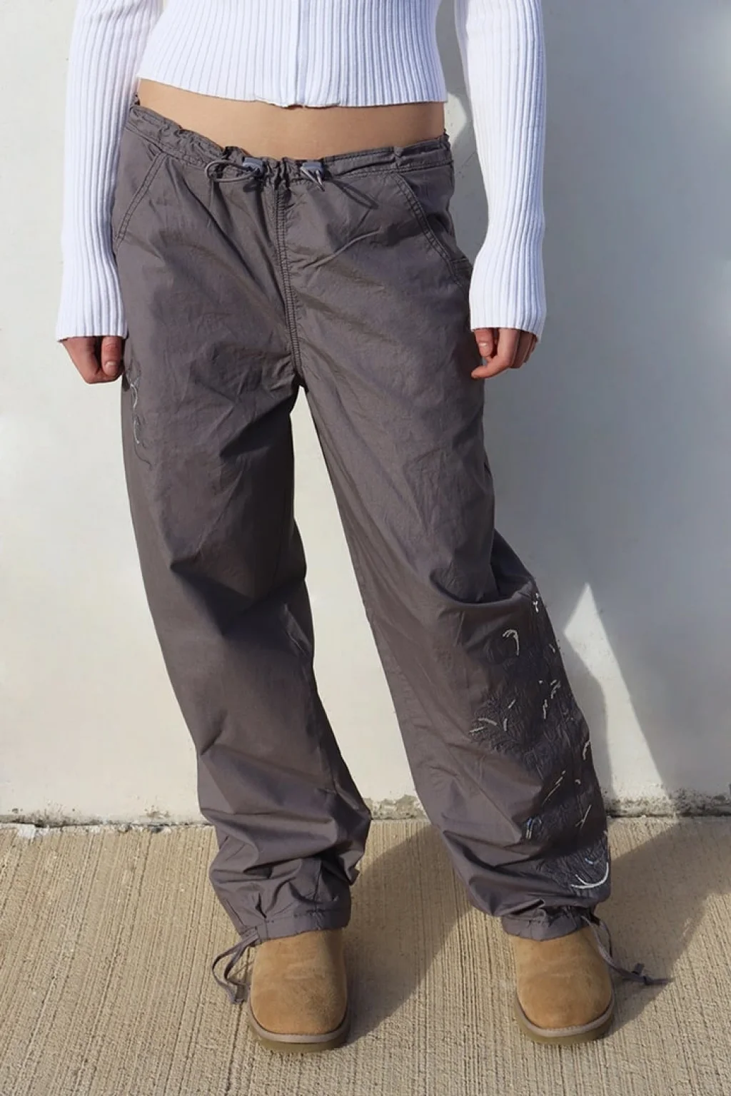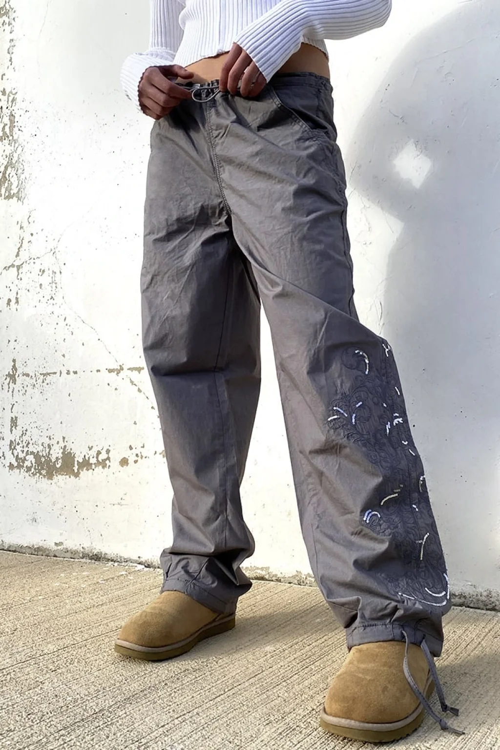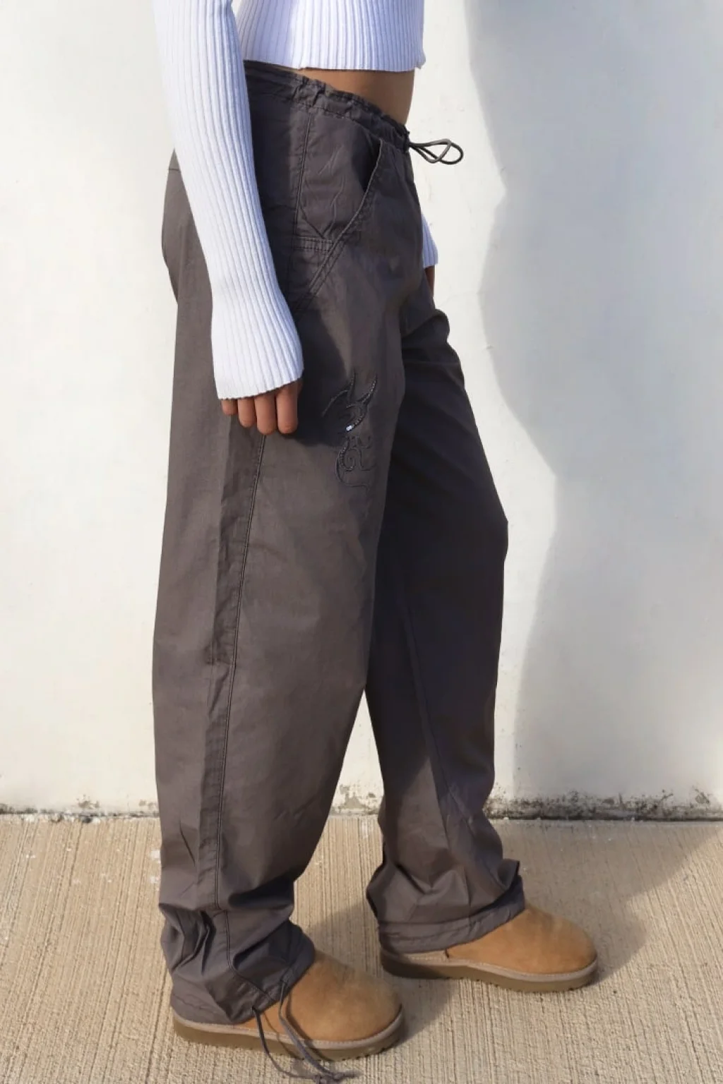 Günlük kullanıma uygun olan pantolon, hafif kumaşı sayesinde rahat bir giyim deneyimi sağlar. Spor ayakkabı, crop top veya oversize sweatshirtlerle kombinlenerek casual ve Y2K tarzına uyum sağlar.