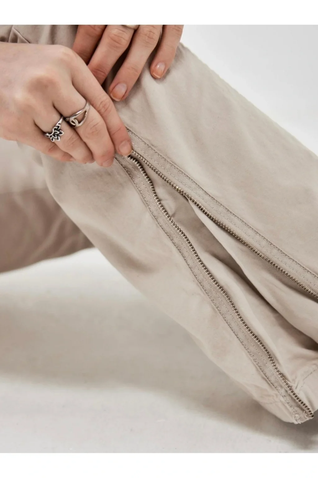 Bağcıklı Paça Detaylı Gri Bol Pantolon