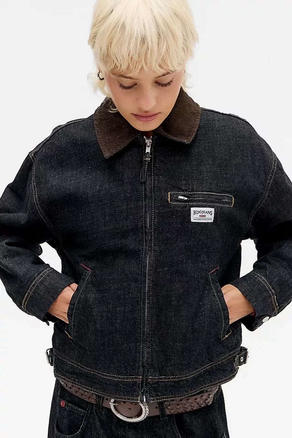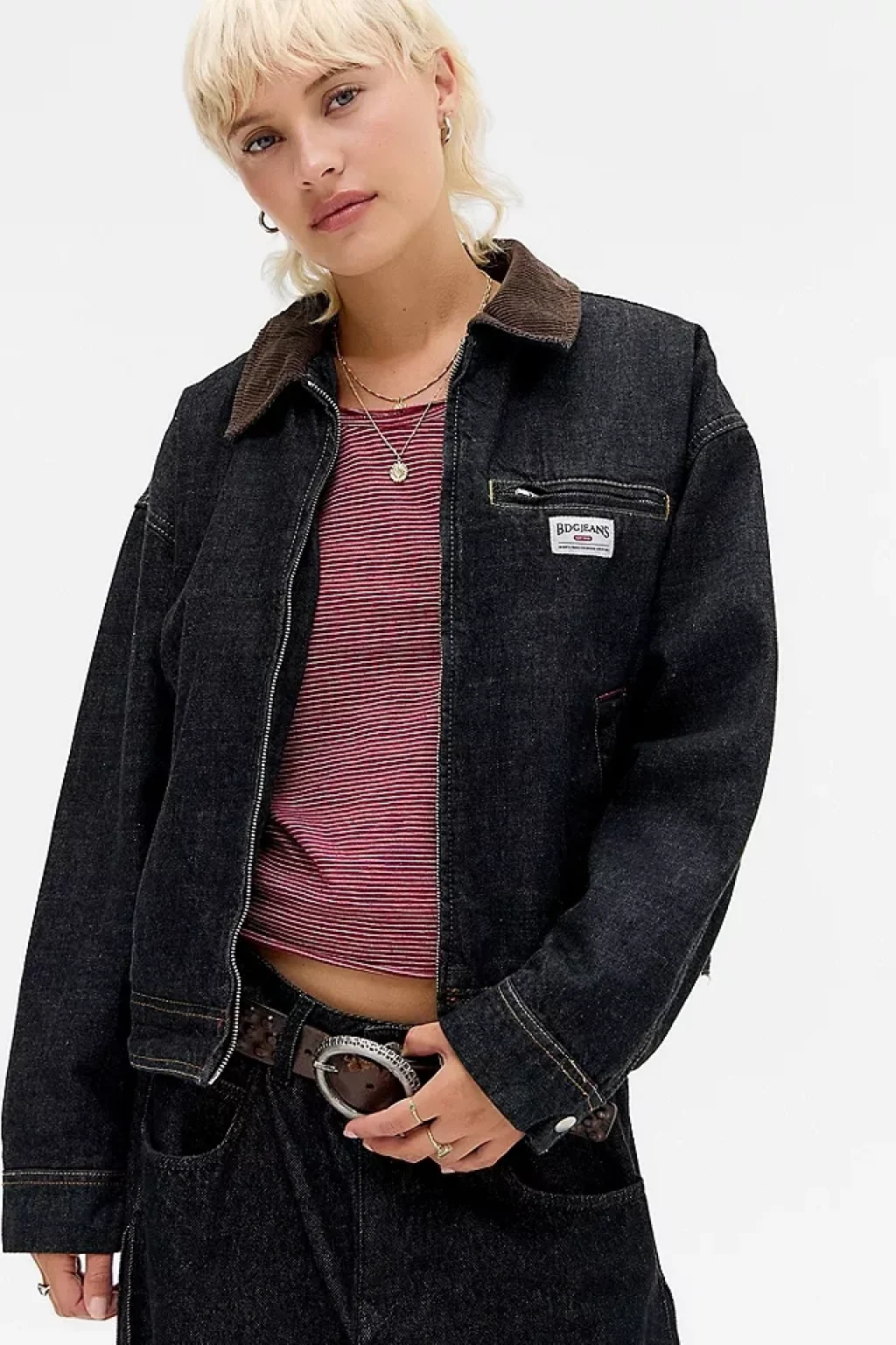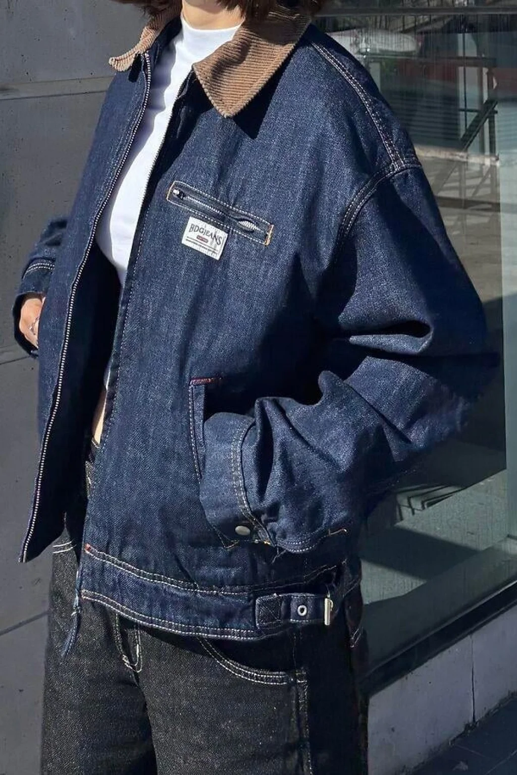 Vintage Fermuarlı Denim Ceket