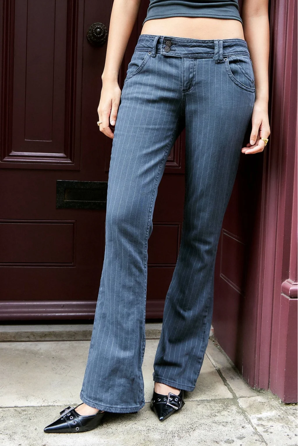 Bel Detay Çizgili Düşük Bel Flare Pantolon, şıklığı ve rahatlığı bir arada sunar. VibeGaia'nın özenle tasarladığı bu pantolon, gardırobunuzun vazgeçilmezi olmaya aday.