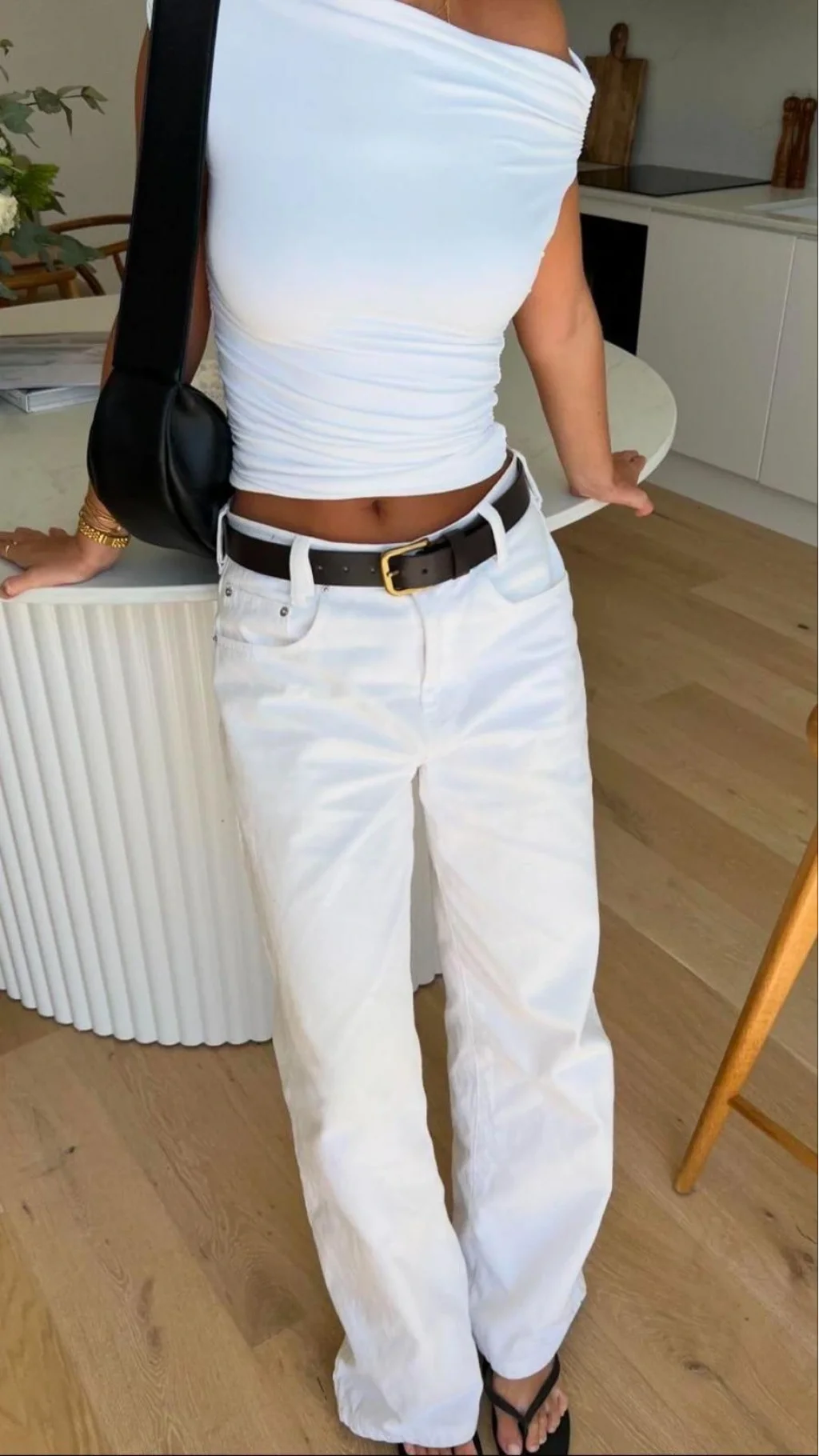 Minimal detaylı tasarımı ve parlak beyaz tonu ile her kombine uyum sağlar — ister spor ayakkabılarla gündüz şıklığı yakalayın, ister topuklu ayakkabılarla daha şehirli bir görünüm elde edin.