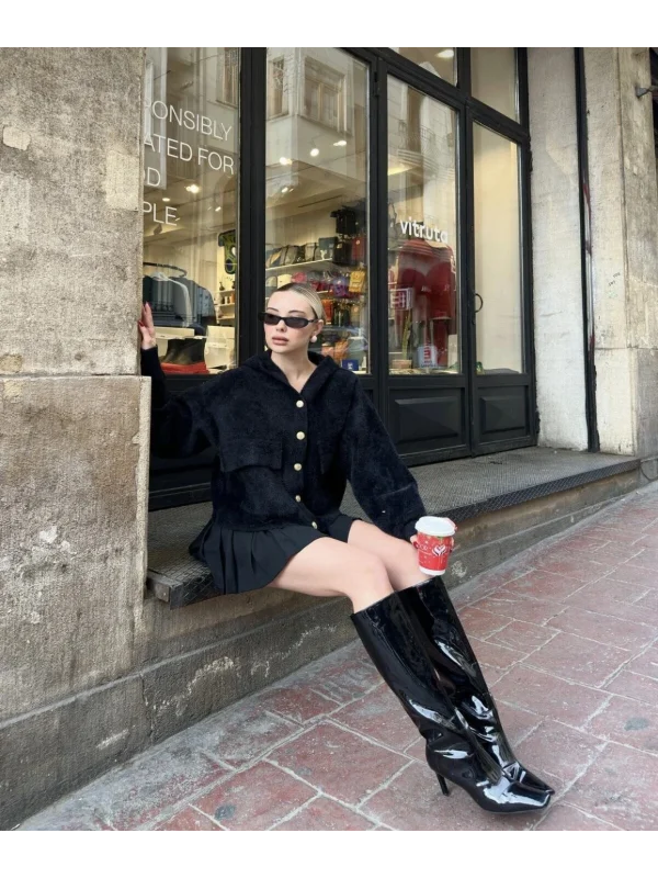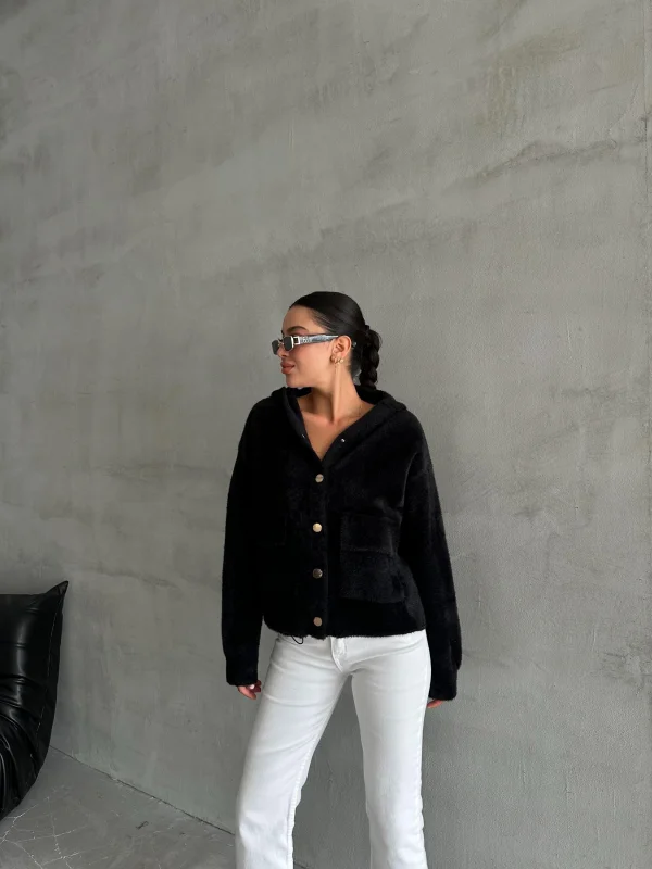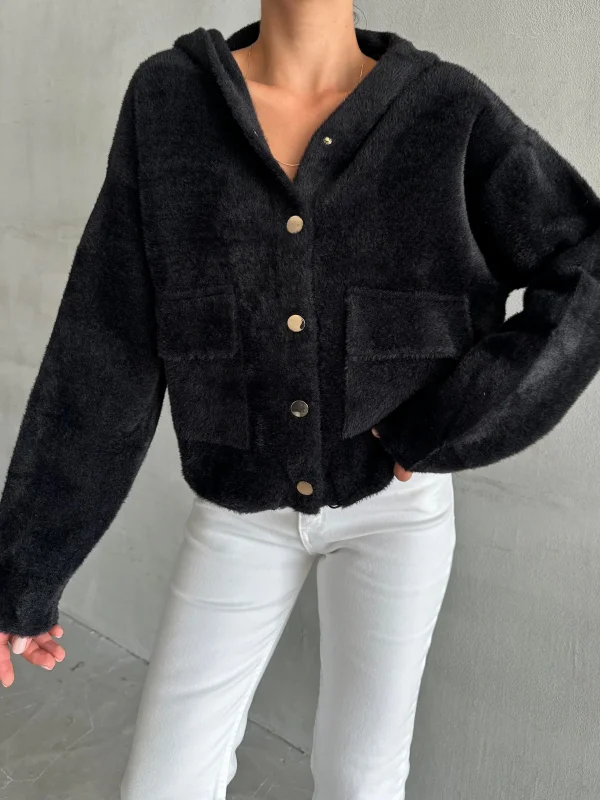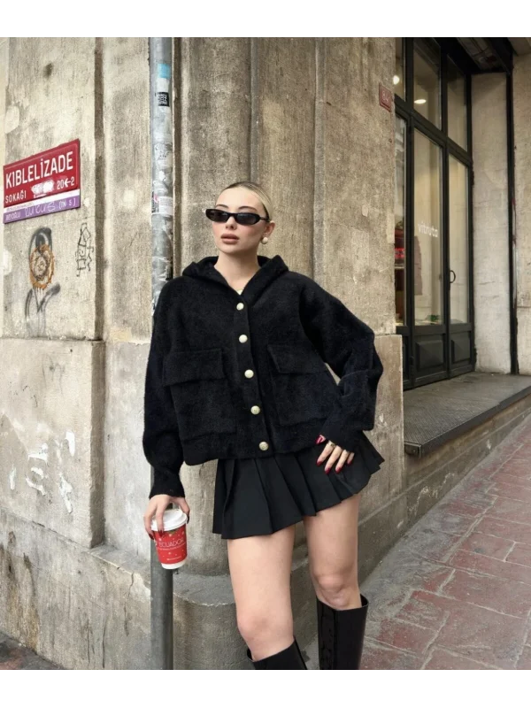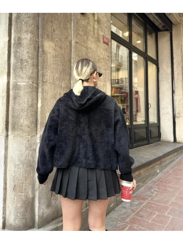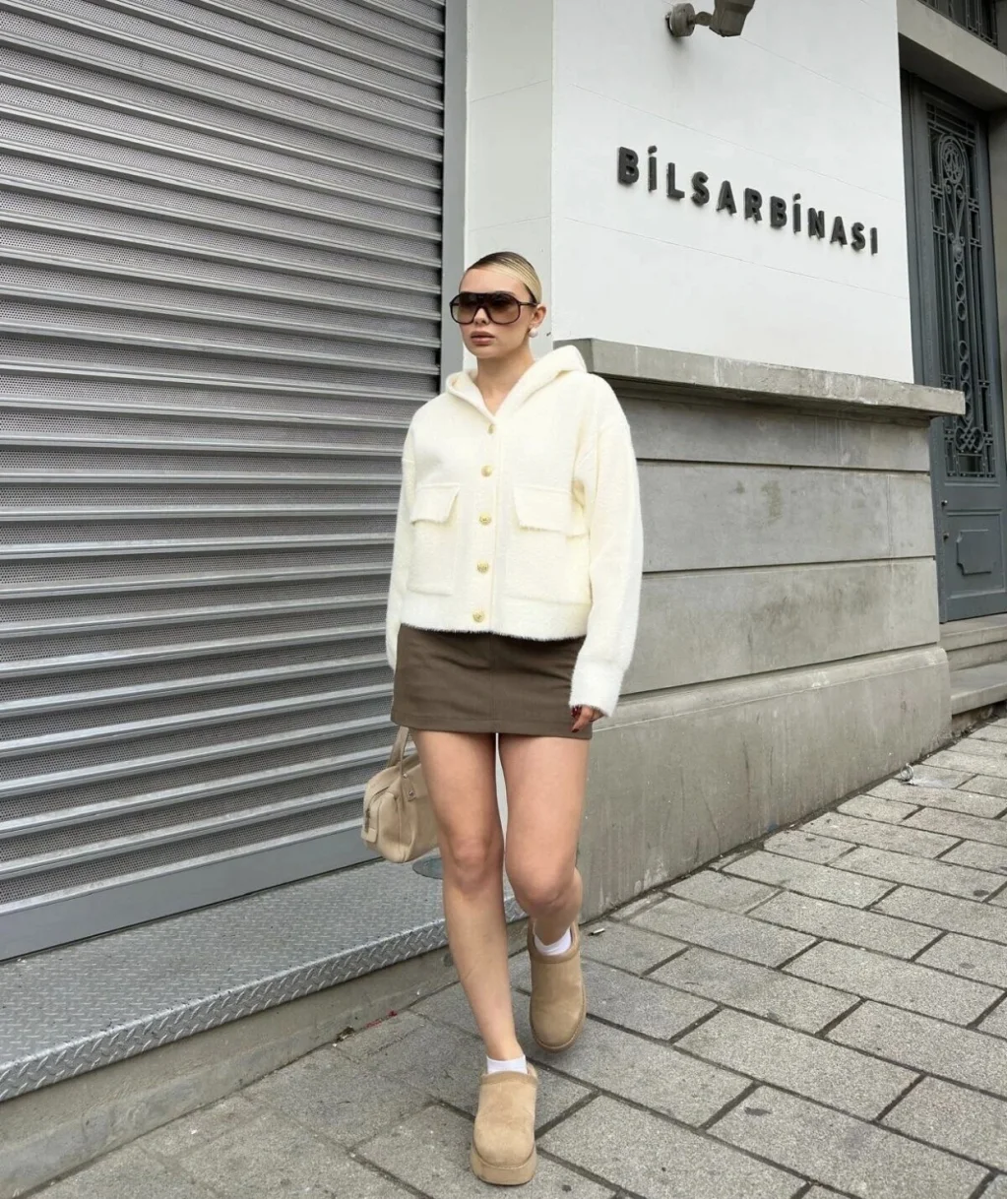 VibeGaia Beyaz Yumoş Kapüşonlu Ceket, şıklığı ve rahatlığı bir arada sunar.