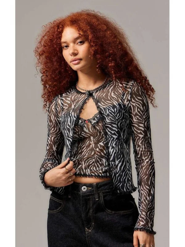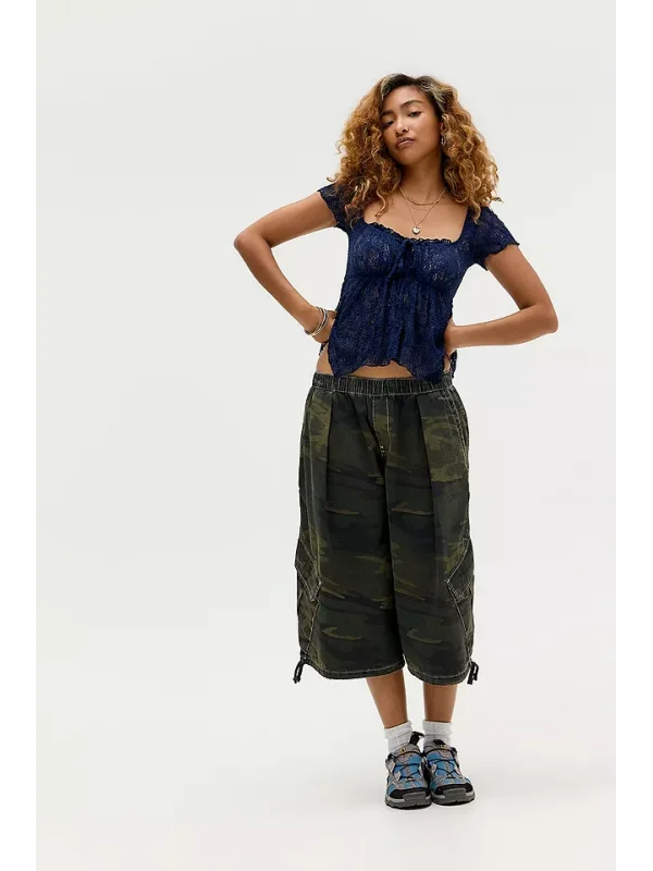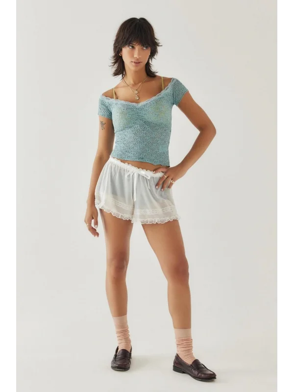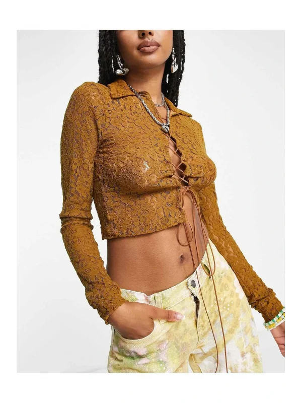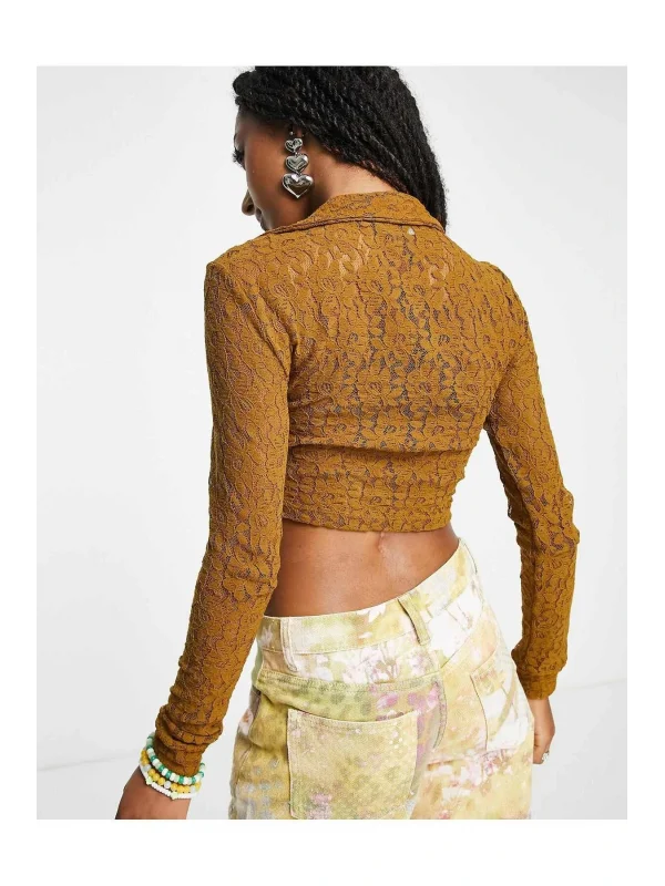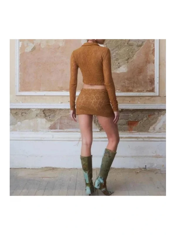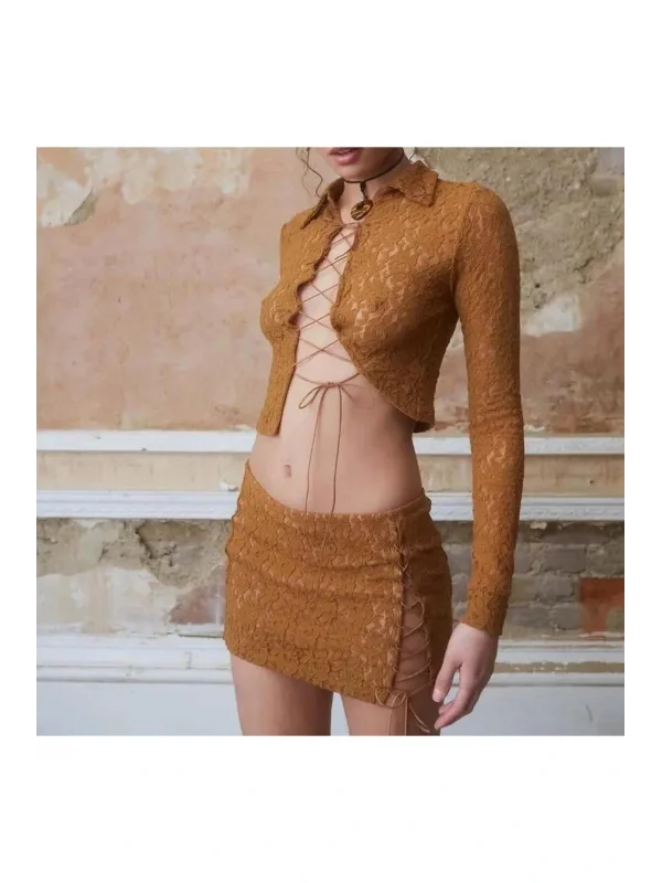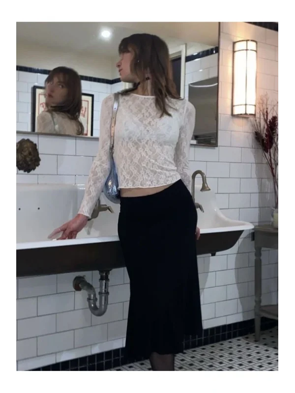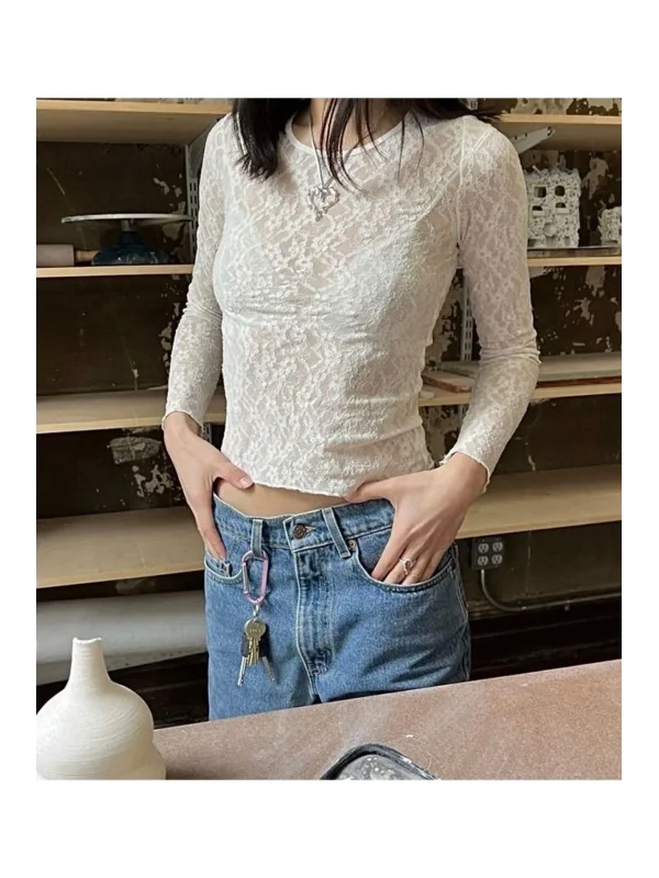 Y2K Vintage Kapitone Dokulu Fırfır Detaylı Gömlek Dantel Kollu Kısa Bluz