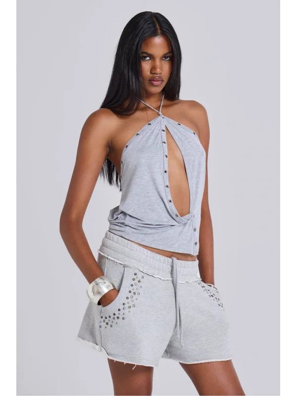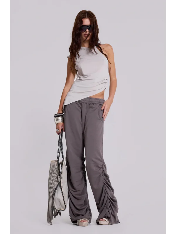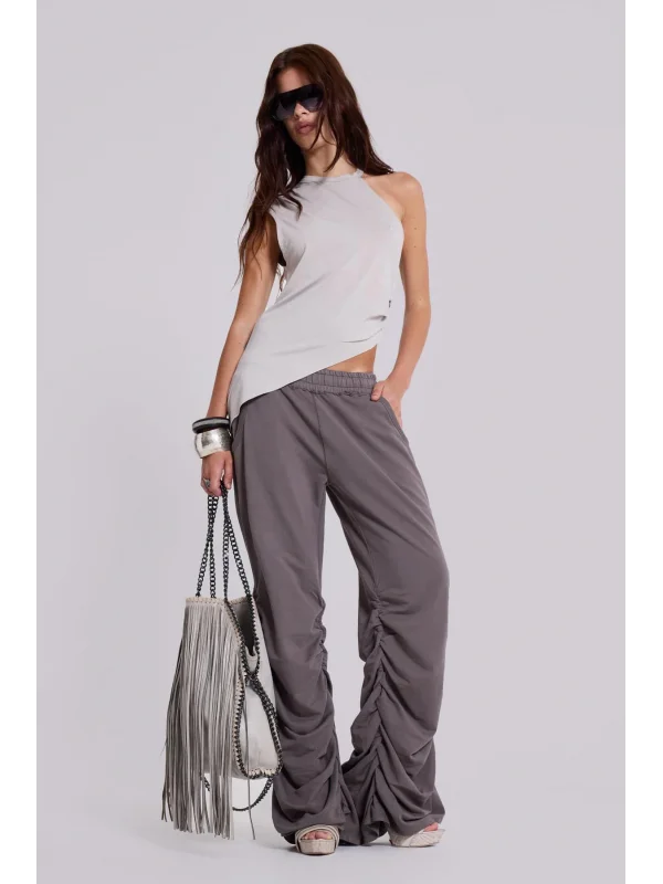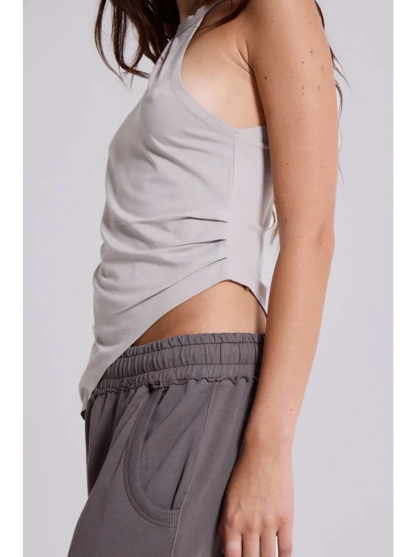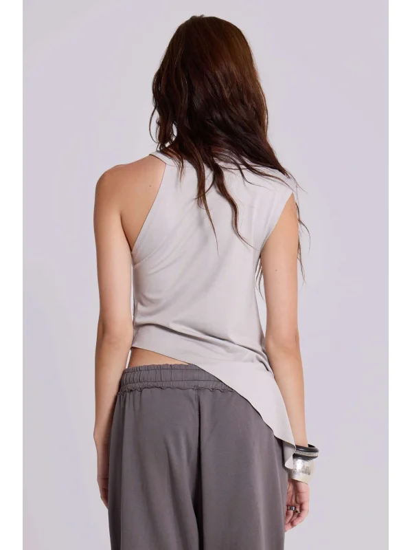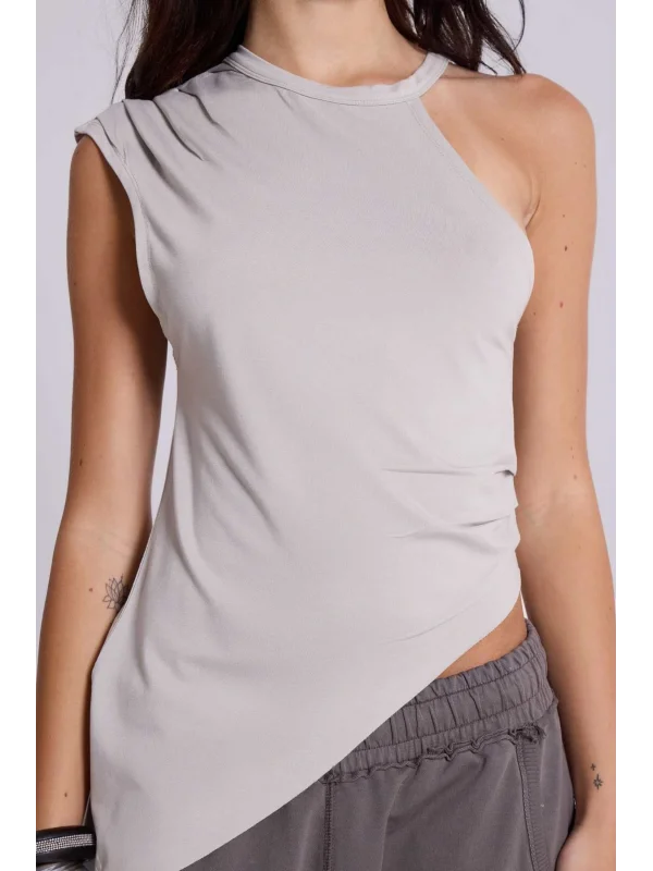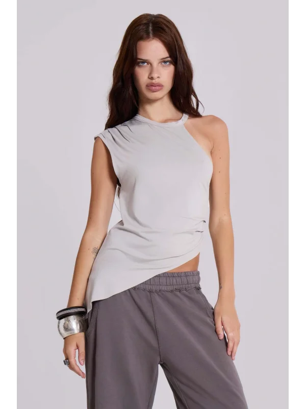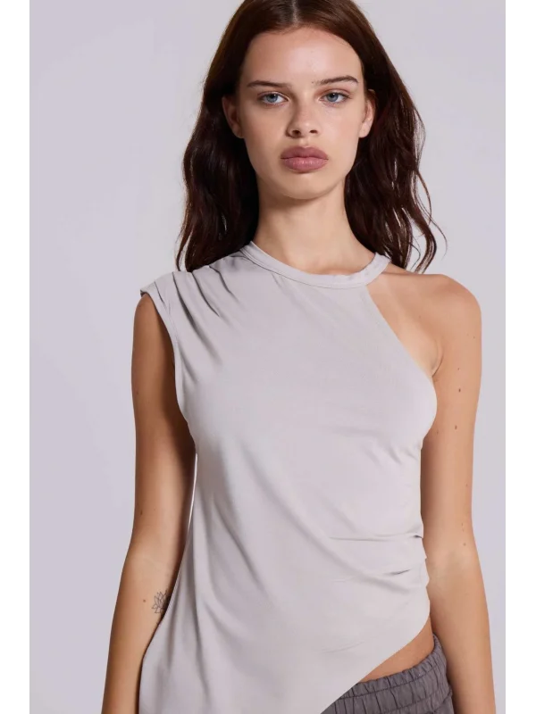 Kadın Gri Asimetrik Tek Omuz Drapeli Jersey Crop Bluz