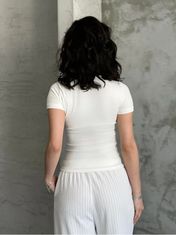Kadın Yumuşak Dokulu Bisiklet Yaka Kısa Kollu Basic Tişört-Bluz