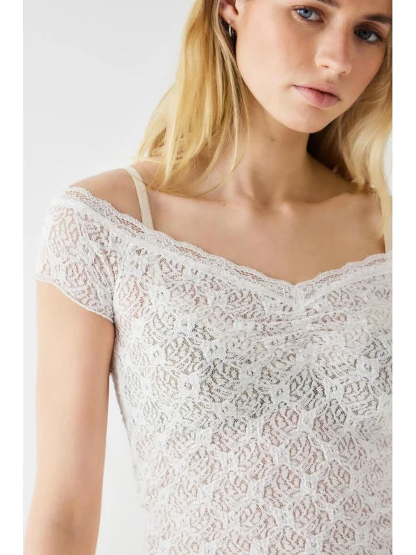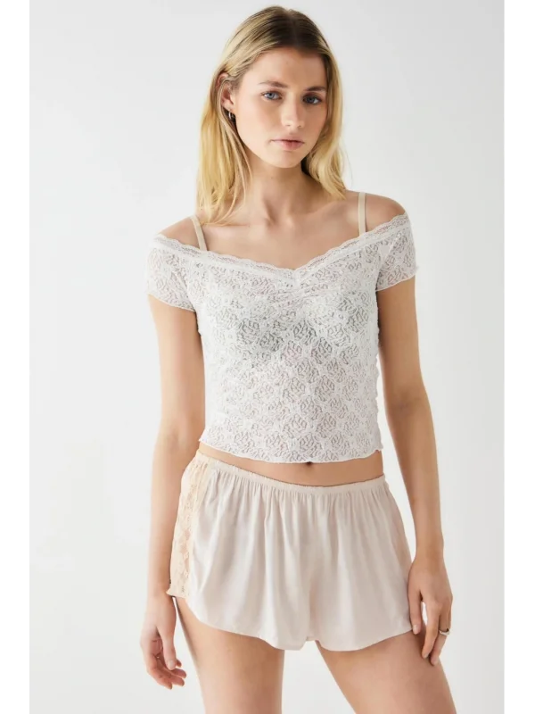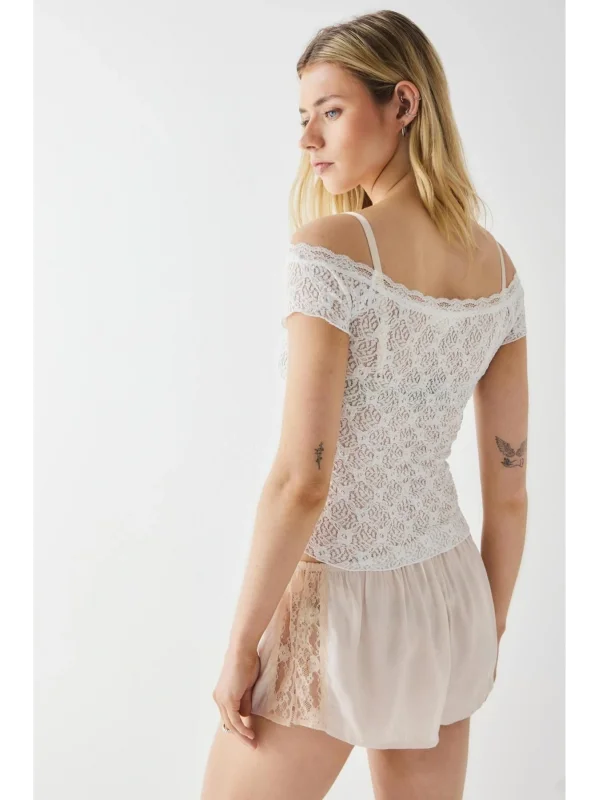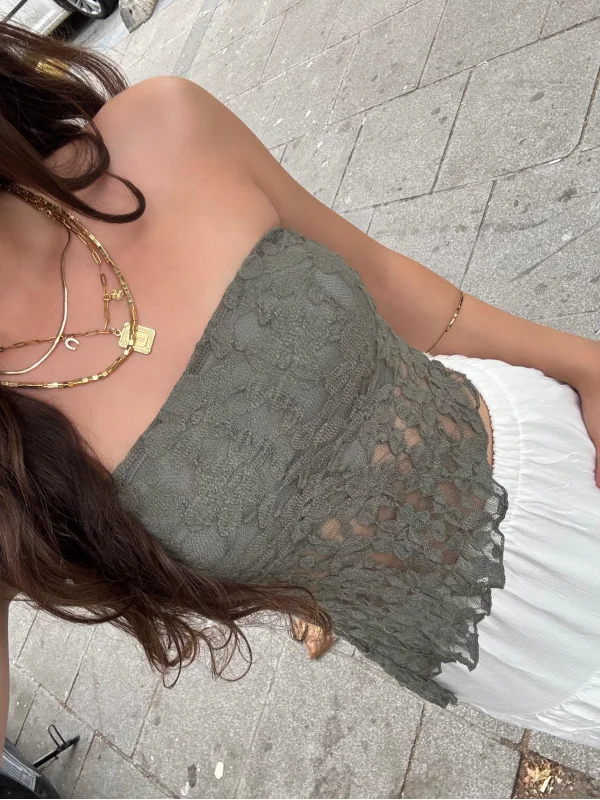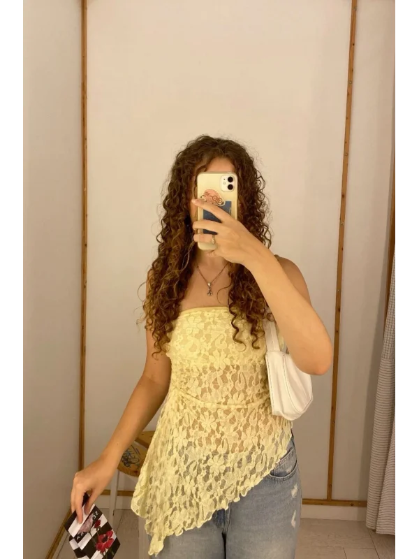 Asimetrik Kesim Slim Fit Straplez Dantel Bluz Astarlı Zarif Tasarım