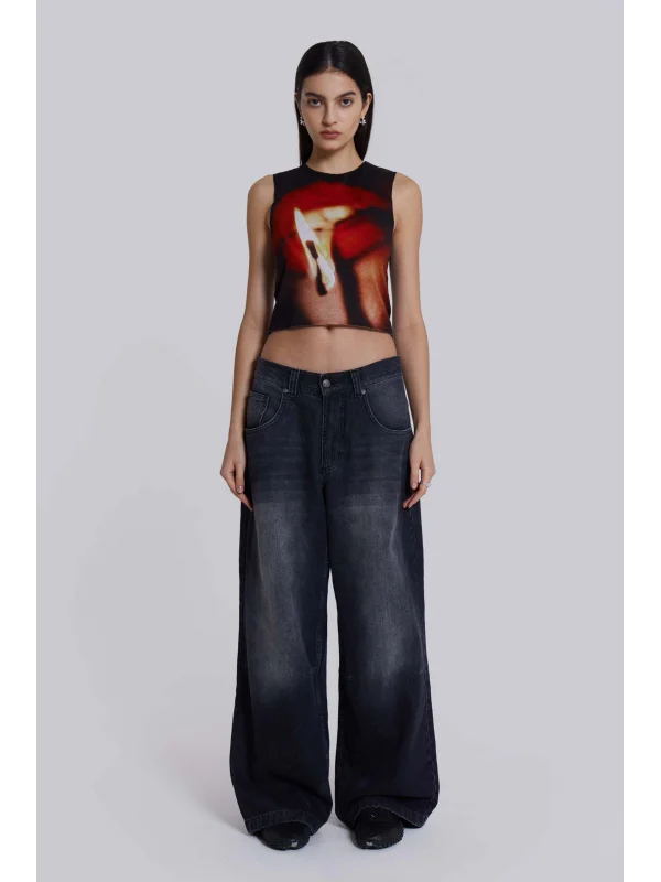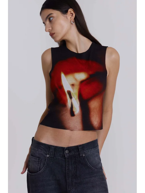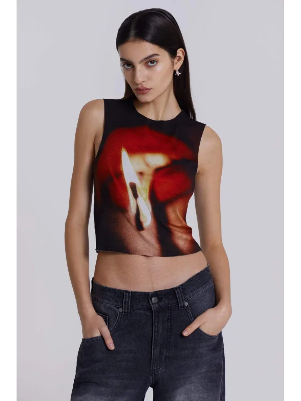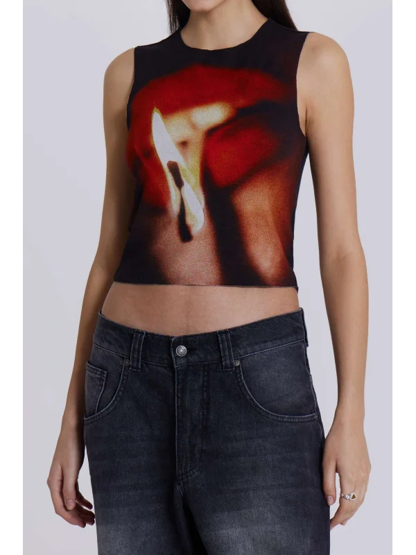 Baskılı Alev Desenli Saten Görünümlü Yırtmaçlı Crop Atlet