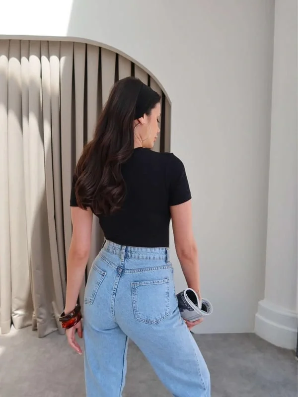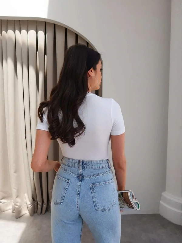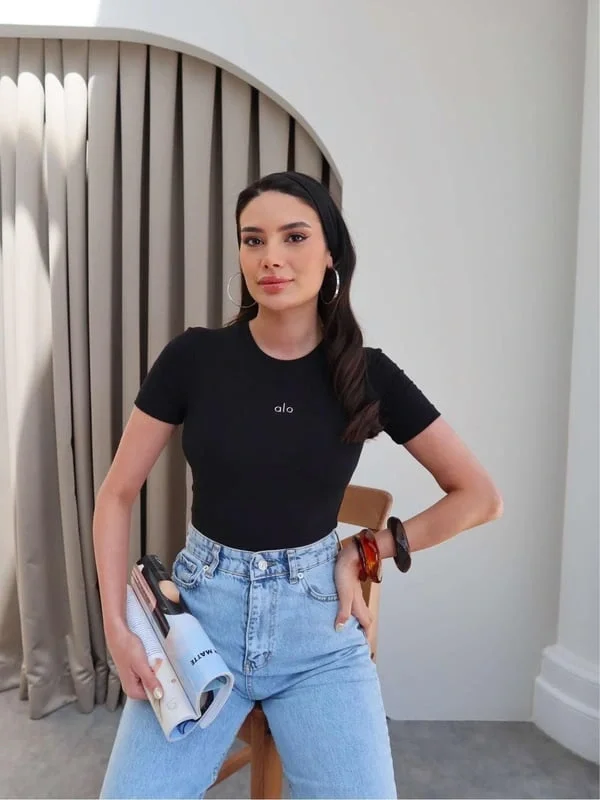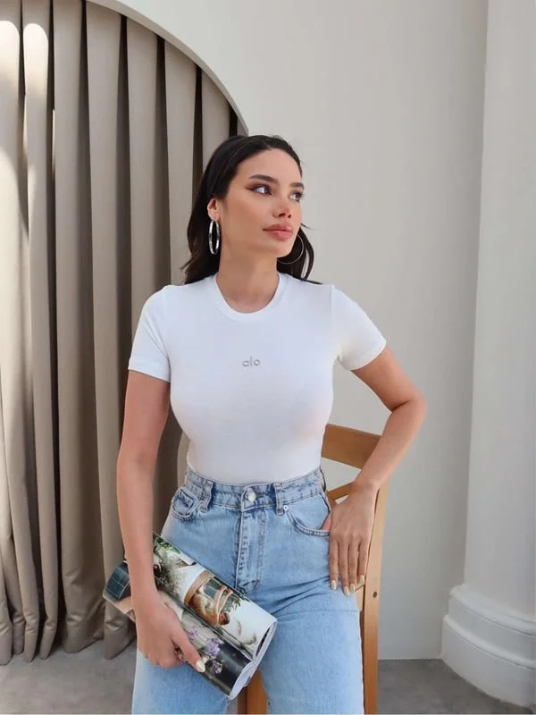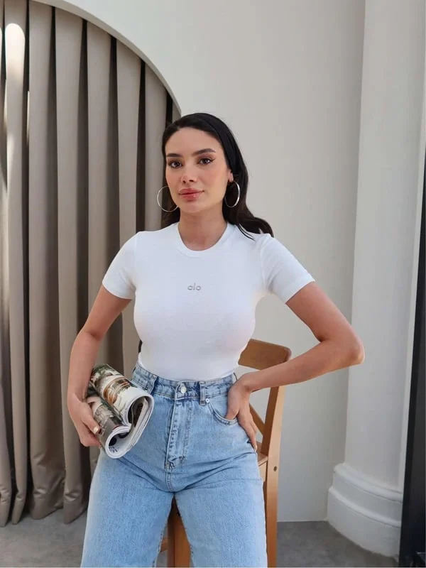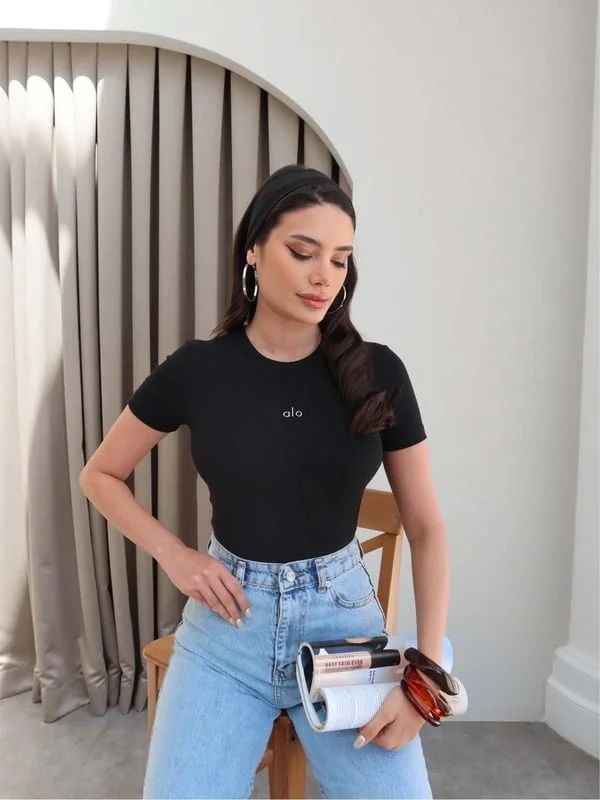 Kadın Marka Muadil Amblemli Pratik Kesim Ribana Bluz Şık Tasarım, Modern Fit Body