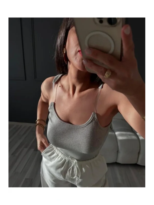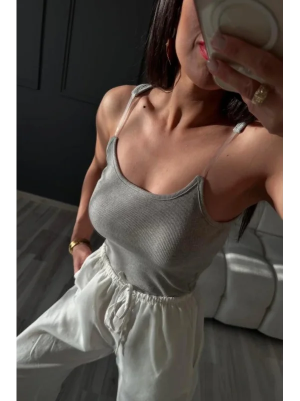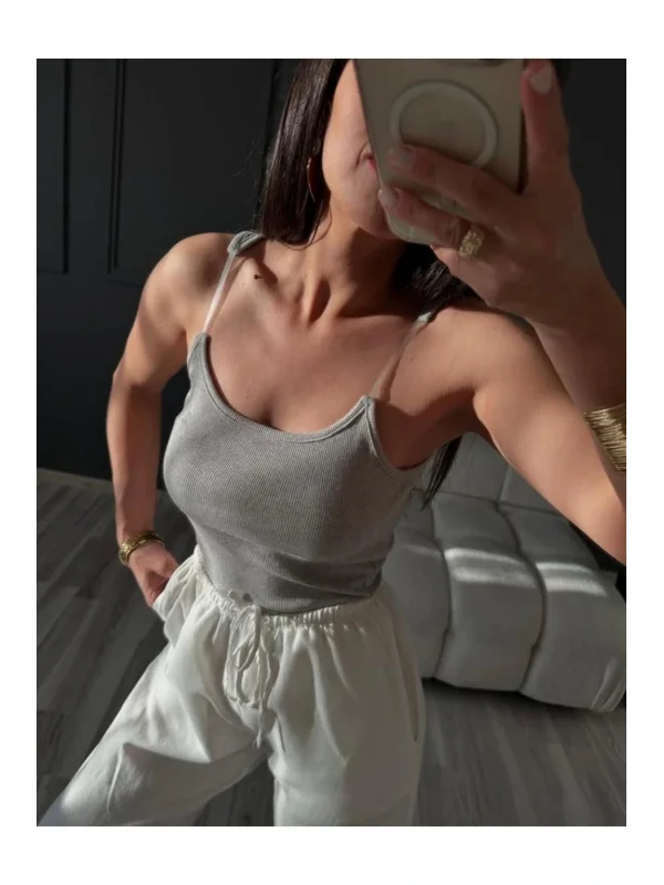 Kadın Kare Yaka Body Fit Kesim Basic Crop Bluz-Atlet