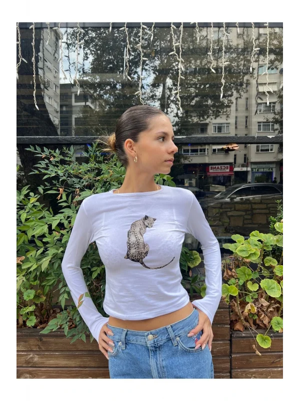 VibeGaia Leopar Silüet Baskılı Uzun Kol Body