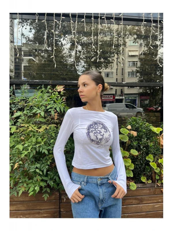 VibeGaia Party Queen Baskılı Uzun Kol Body