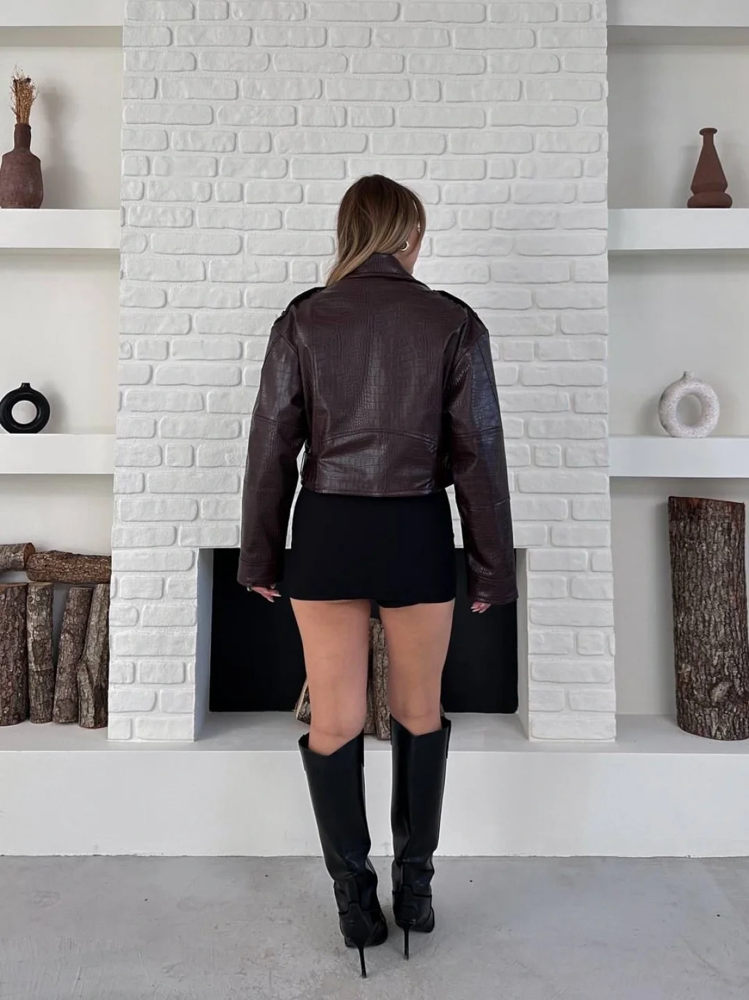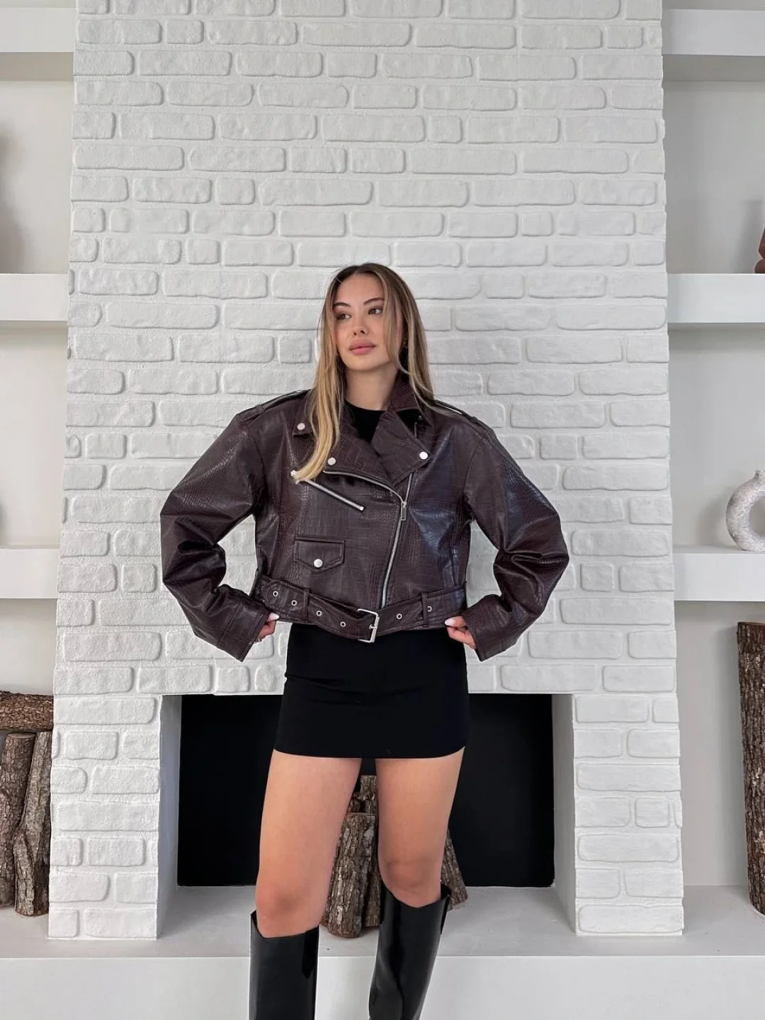 Krokodil Deri Ceket, VibeGaia'nın iddialı tasarımlarından biridir. Gerçek deri görünümüyle şıklığınızı ön plana çıkarır.