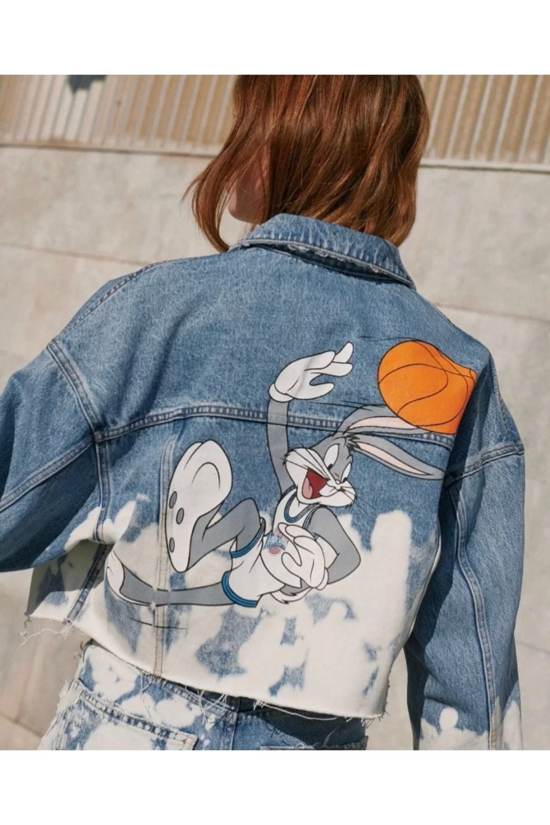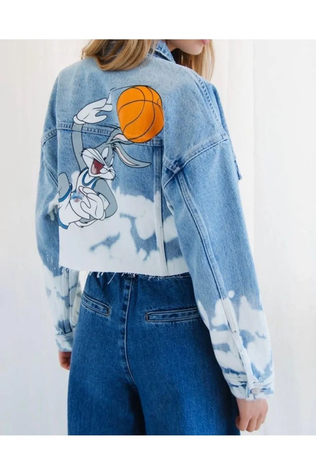 Kadın Organik Pamuklu Kırpık Kot Ceket Crop Denim Mont