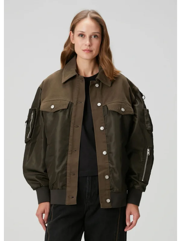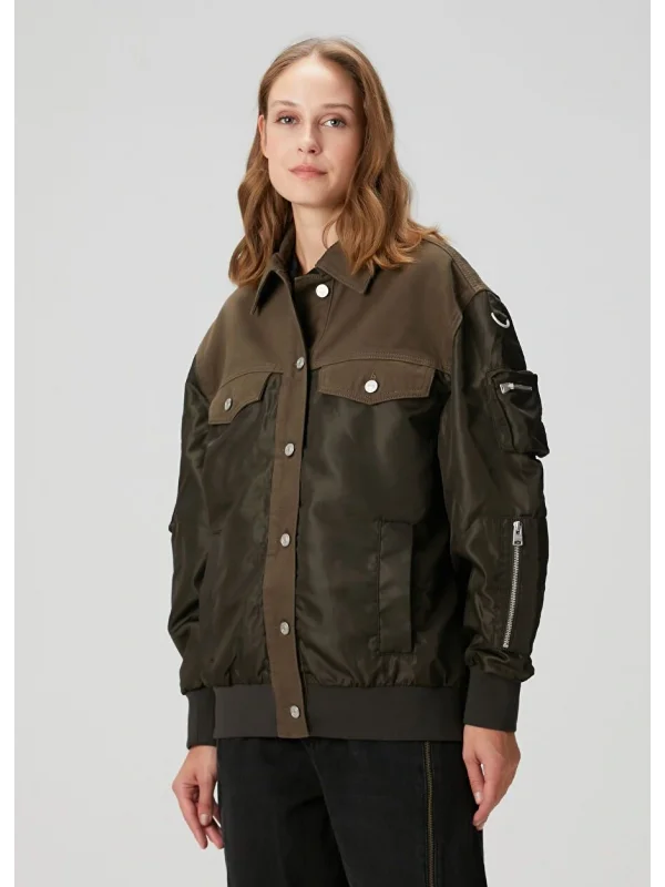 Haki Çift Kumaş Oversize Ceket