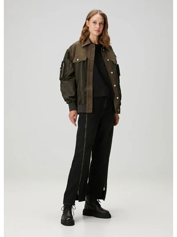 Vintage Yeşil Denim Bomber Unisex Ceket Oversize Mevsimlik Kaban
