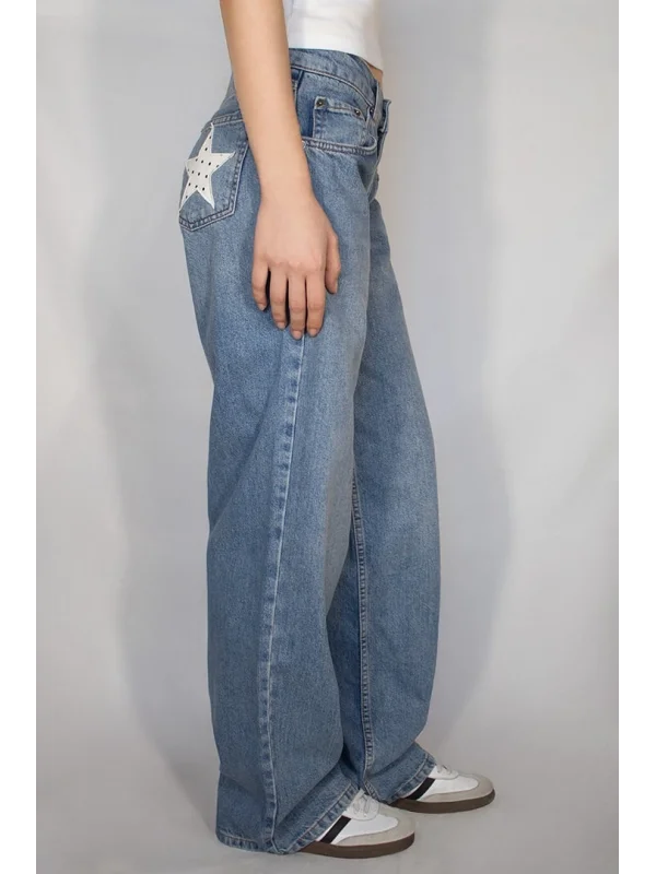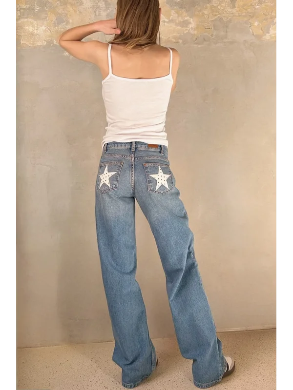 Yıldız Taşlı Y2K Düşük Bel Flare Jean