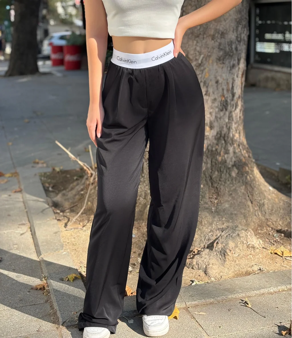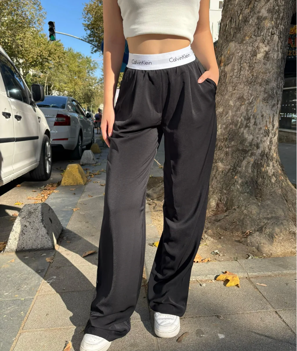 Bu CKL siyah palozzo pantolon eşofman altı, rahat kesimi ve şık tasarımıyla günlük kullanımlarınız için mükemmel bir seçenek. Elastik bel bandı ve yan cepleriyle pratiklik sağlarken, üst düzey konforu ile sizi rahat ettirir. Hem spor yaparken hem de rahat bir günlük kombin oluştururken kullanabileceğiniz bu eşofman altı, zarif CKL logosuyla şıklığınızı tamamlar.