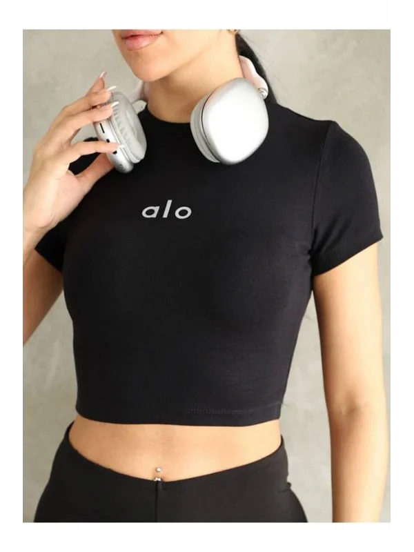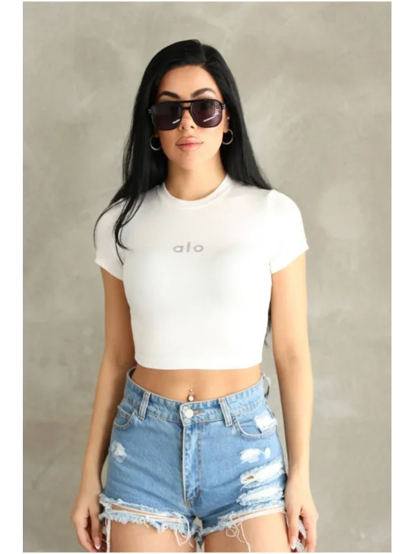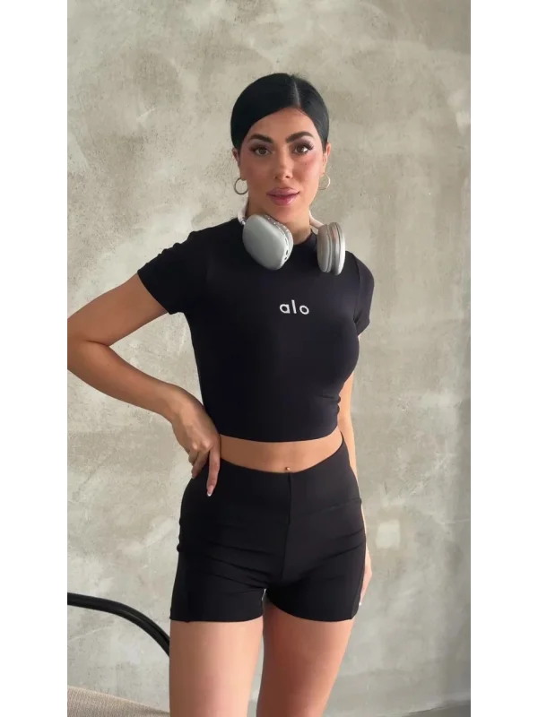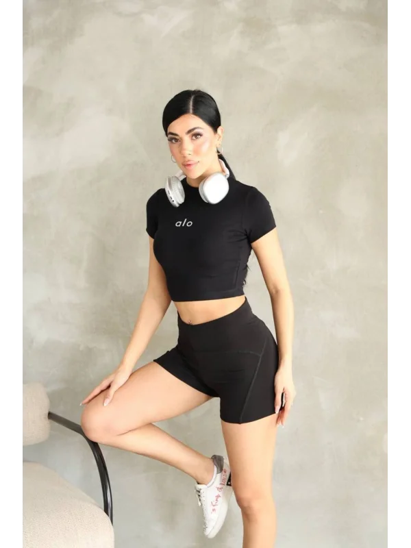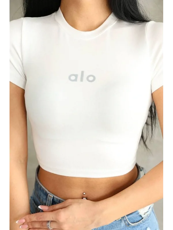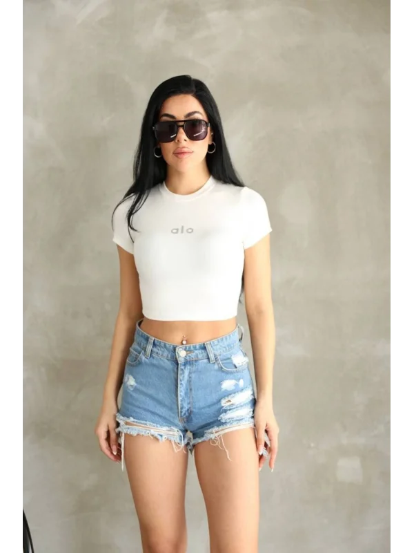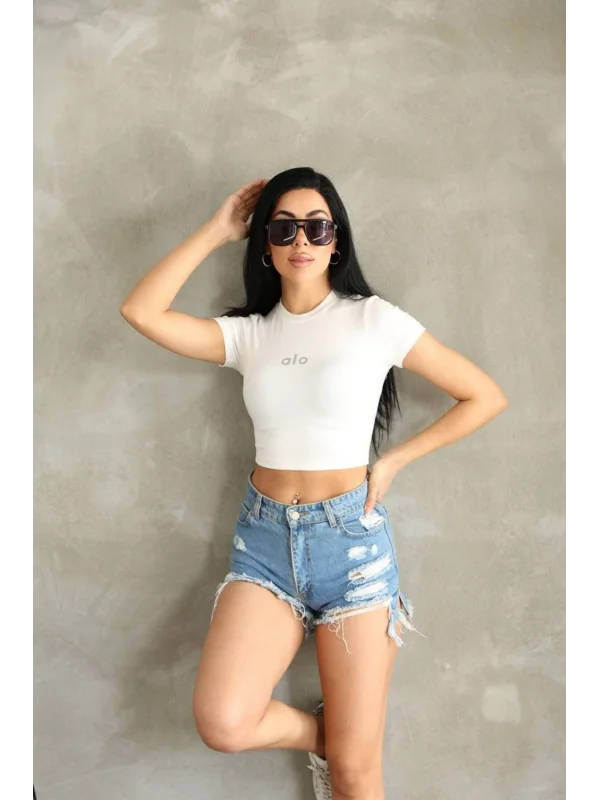 Kadın Bisiklet Yaka Kısa Kollu Basic Crop Top Tişört