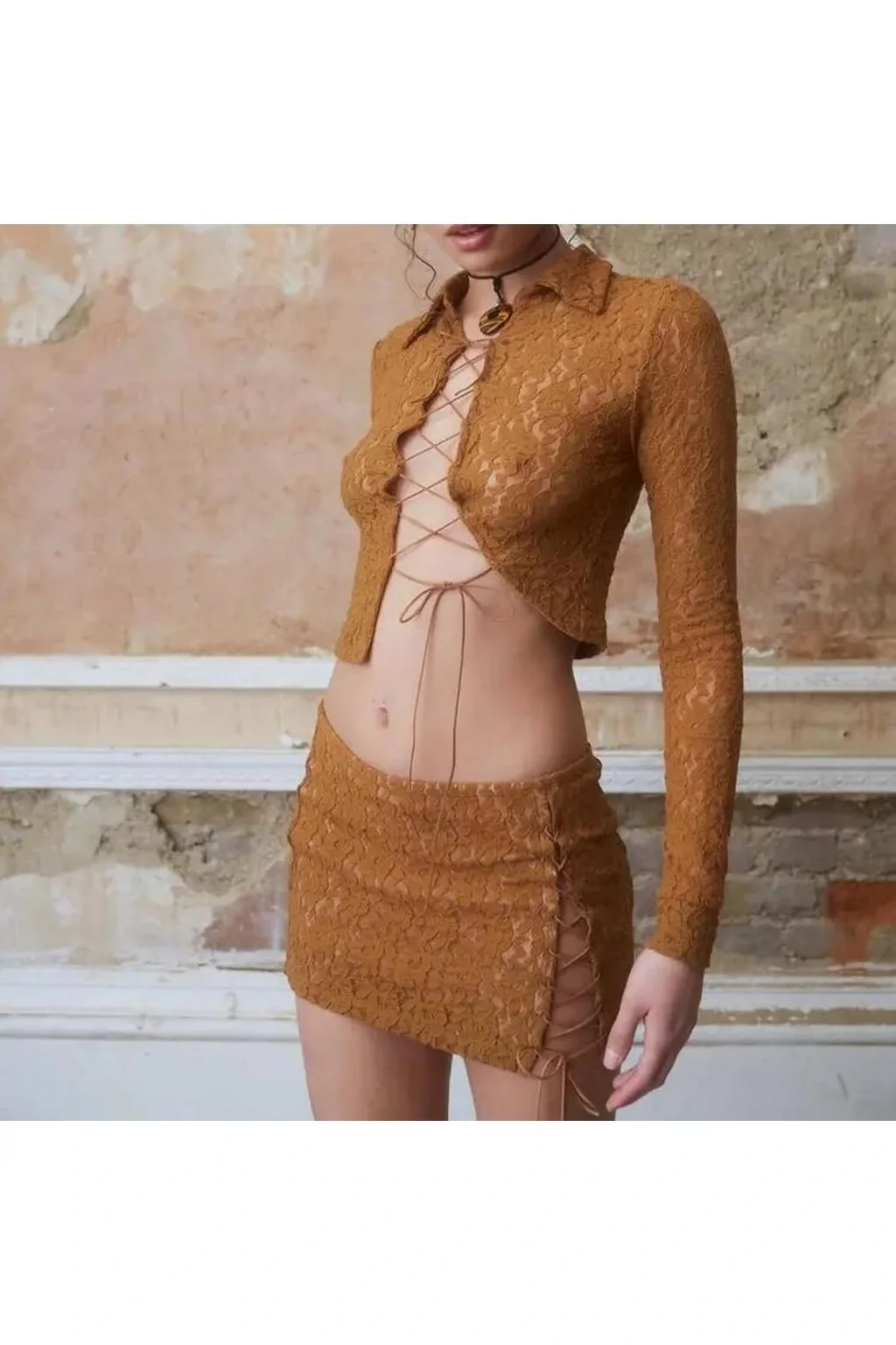 Dantel Bağcık Mini Etek Jl