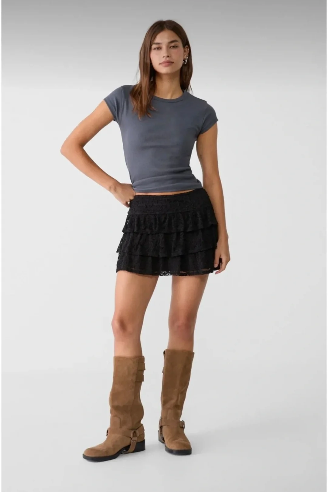 Dantel Dökümlü Mini Etek
