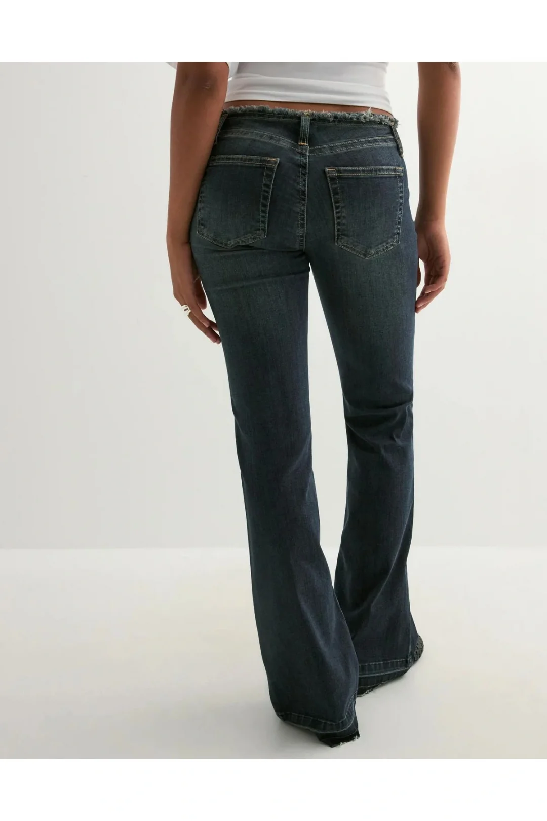 90’lar enerjisini modern çizgilerle buluşturan bu düşük bel bootcut jean, hem günlük kombinlerinde hem gece stillerinde fark yaratmak isteyenler için tasarlandı. Esnek yapısı sayesinde vücudu mükemmel şekilde sararken, tam kalıbı ve rahat kumaşıyla gün boyu konfor sunar.