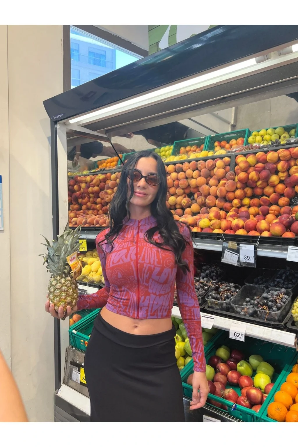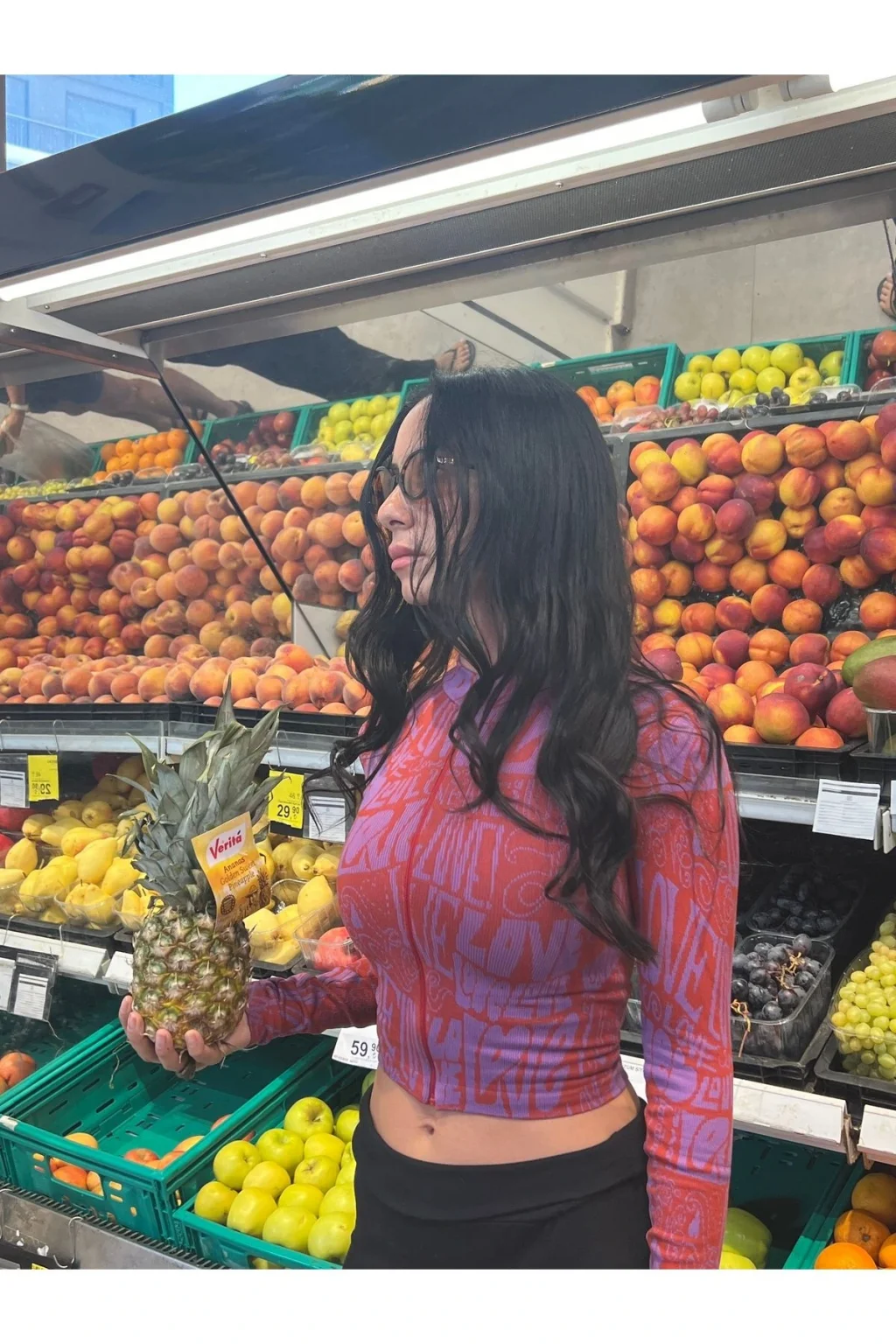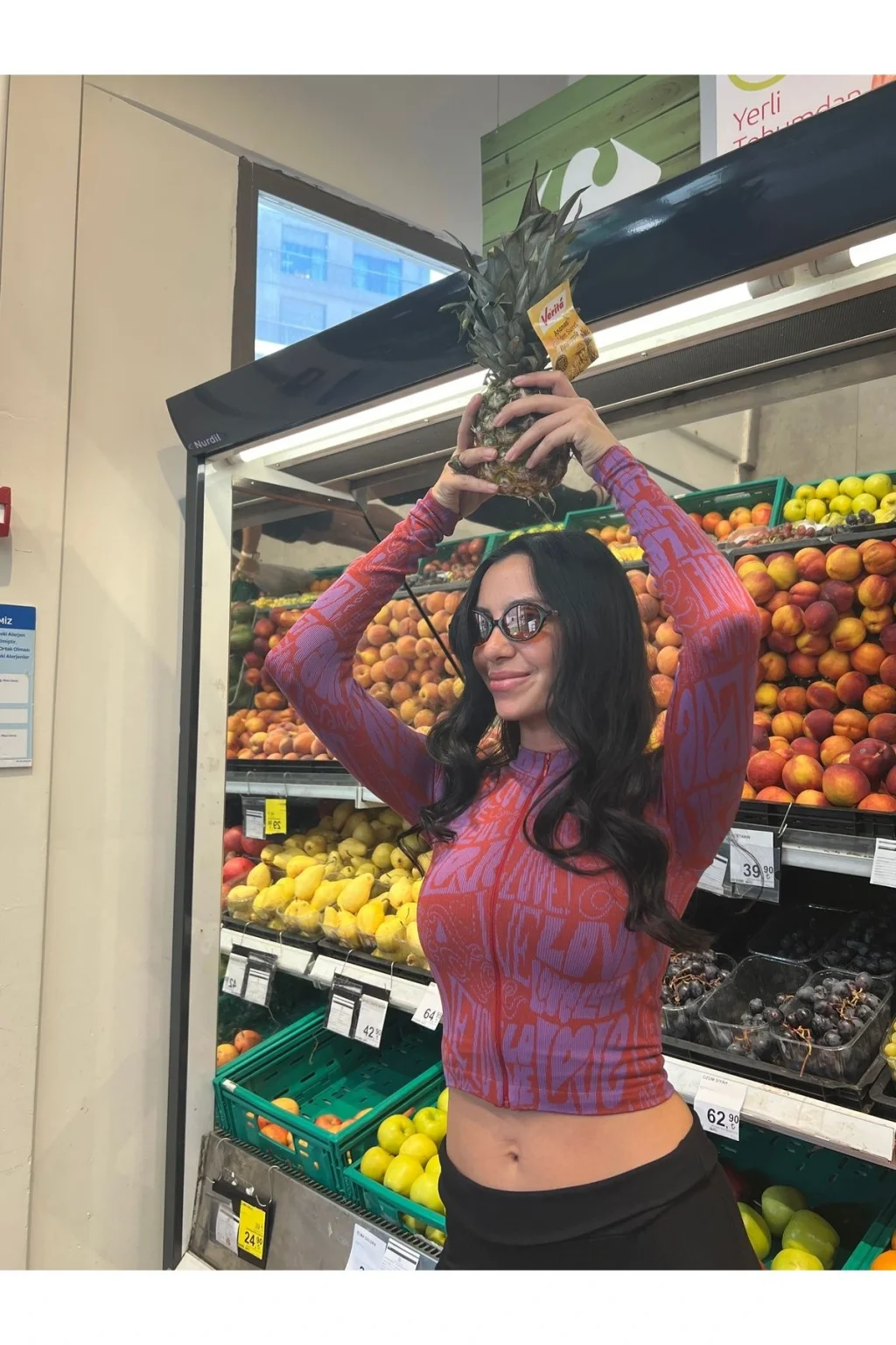 TRS Bisiklet Yaka Çilek Doku Transparan Body