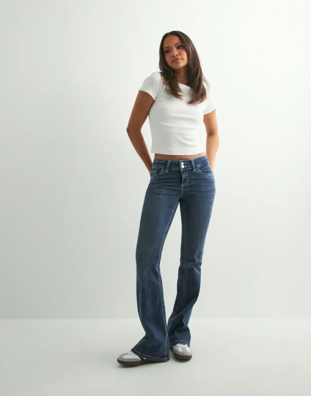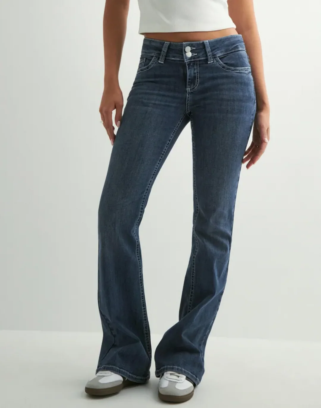 Ürün tam kalıptır, kendi bedeninizi tercih etmeniz tavsiye edilir.; - Rahat kesimiyle günlük kullanım için ideal, düşük bel bootcut pantolon.; - İspanyol paça tasarımı ile modern ve şık bir görünüm sunar.; - Beş adet cep detayı sayesinde pratik depolama alanları sağlar.; - Pamuklu kumaşı konforlu bir deneyim vaat ederken, denim malzemesi dayanıklılığı artırır.; - Düz renk seçeneğiyle kolayca kombinlenebilir; her gardıropta temel parça olarak yerini alır.; - Sade ve düz deseniyle zamansız bir stil oluştururken, web color mavi tonuyla dikkat çeker.; - Günlük ortamlarda rahatlıkla tercih edebileceğiniz bu pantolon, her yaş grubuna hitap eder.; - Cep detayları ile fonksiyonellik kazandırırken, bootcut siluetiyle trend bir görünüm sunar.