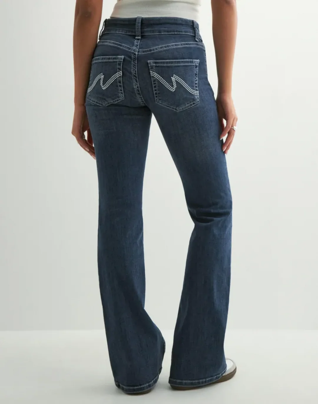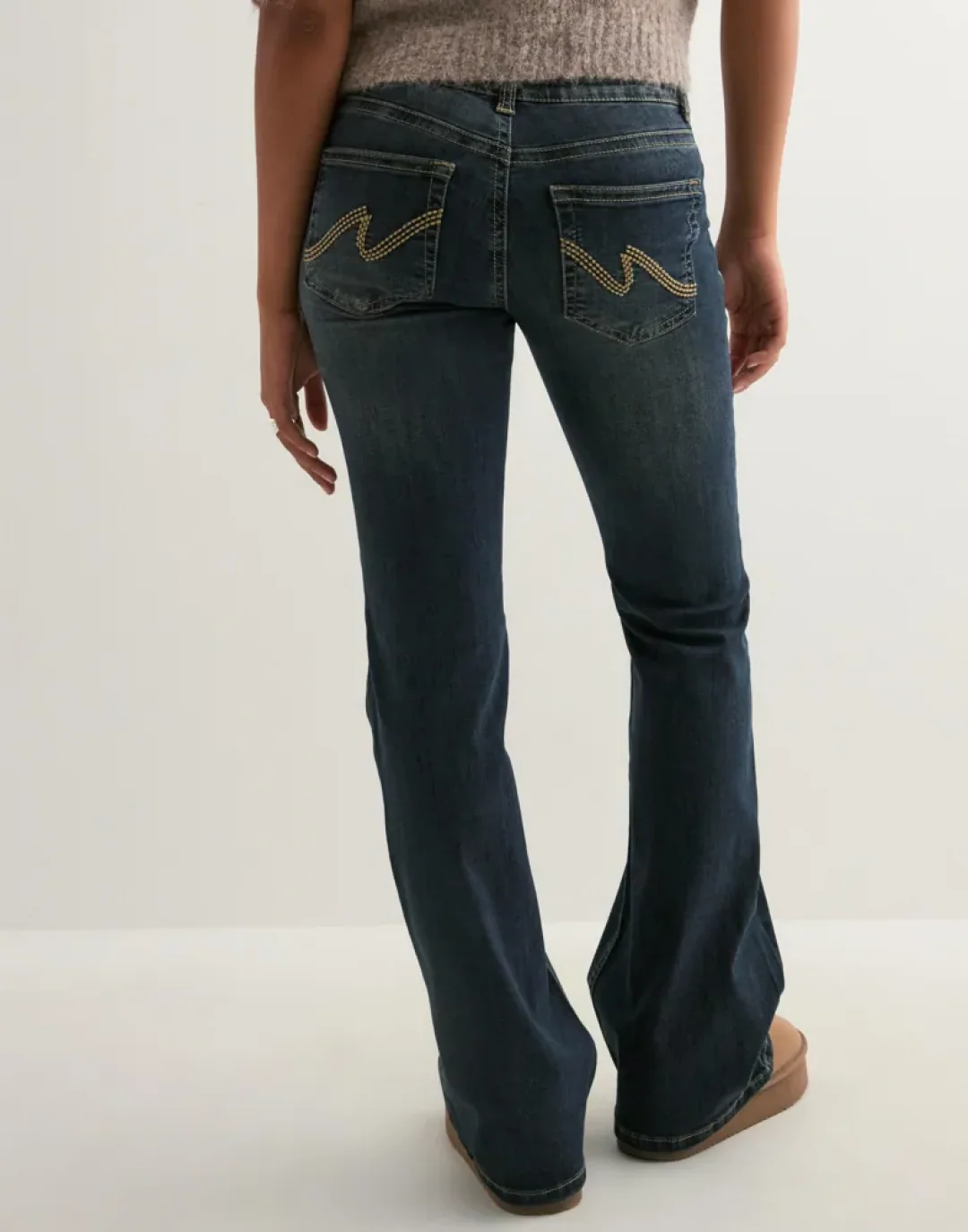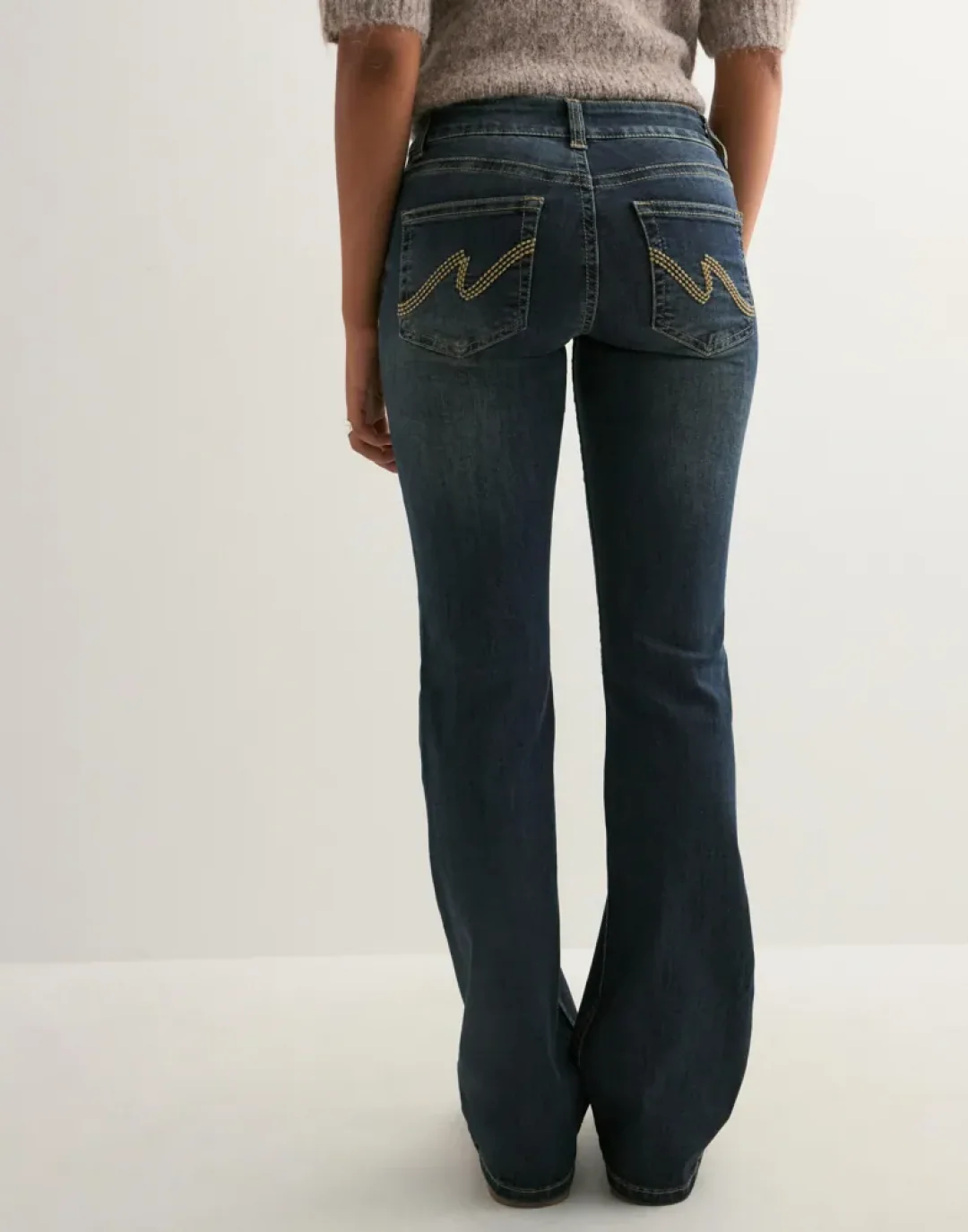 Şıklığı ve konforu bir arada arayanların tercihi olan VibeGaia Düşük Bel Bootcut Arka Cep Detaylı Koyu Kot Pantolon'u hemen sepetinize ekleyin!