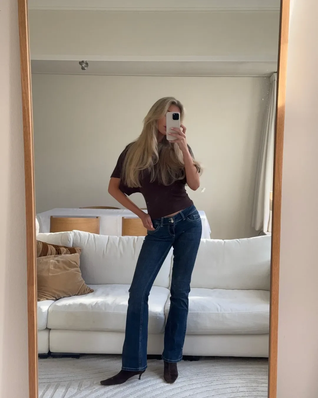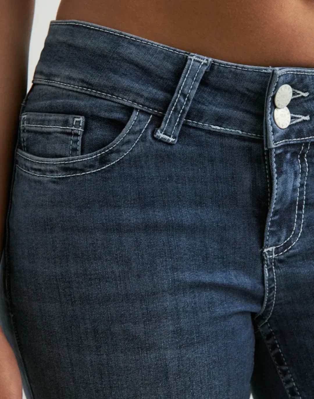 Düşük bel kesimi, modern ve şık bir görünüm sunar.