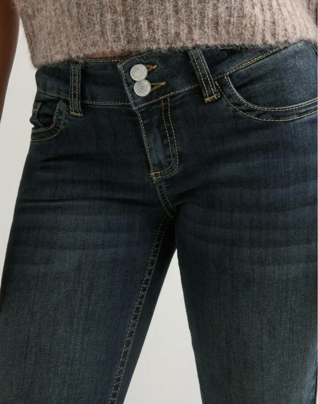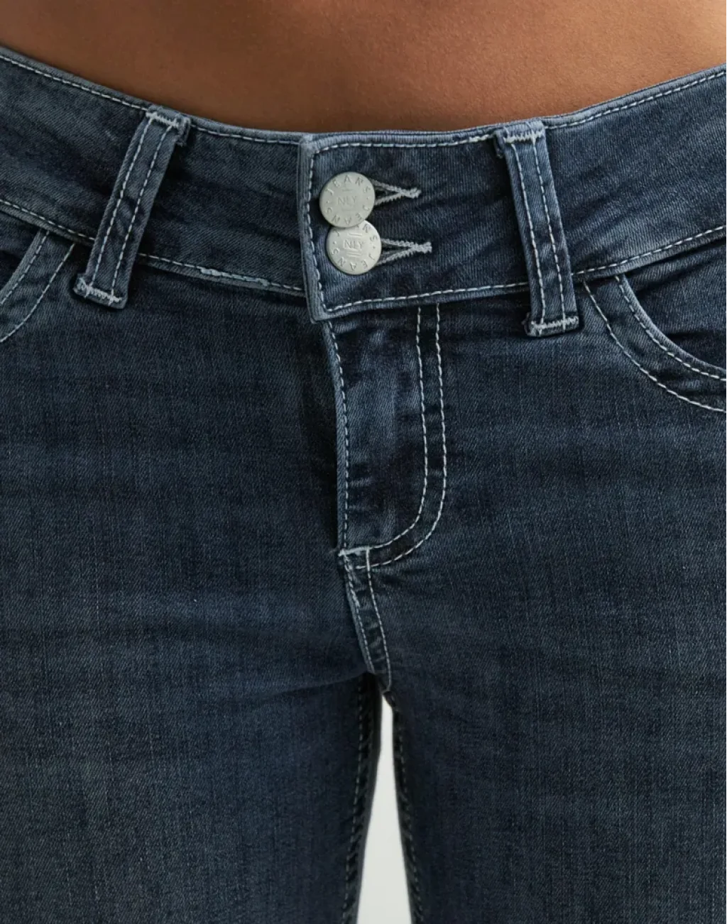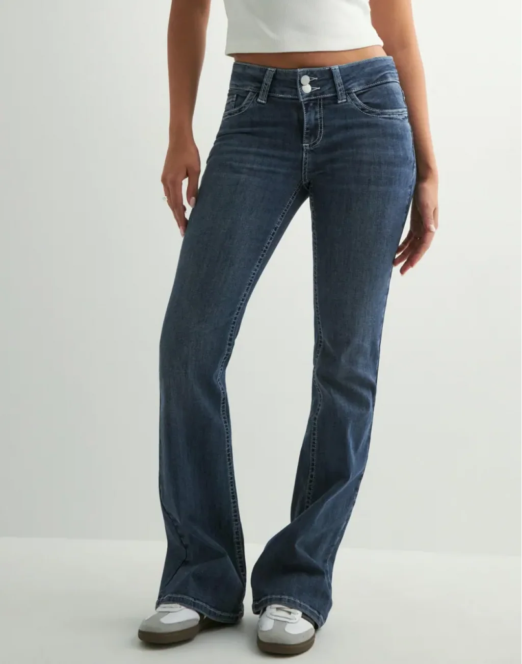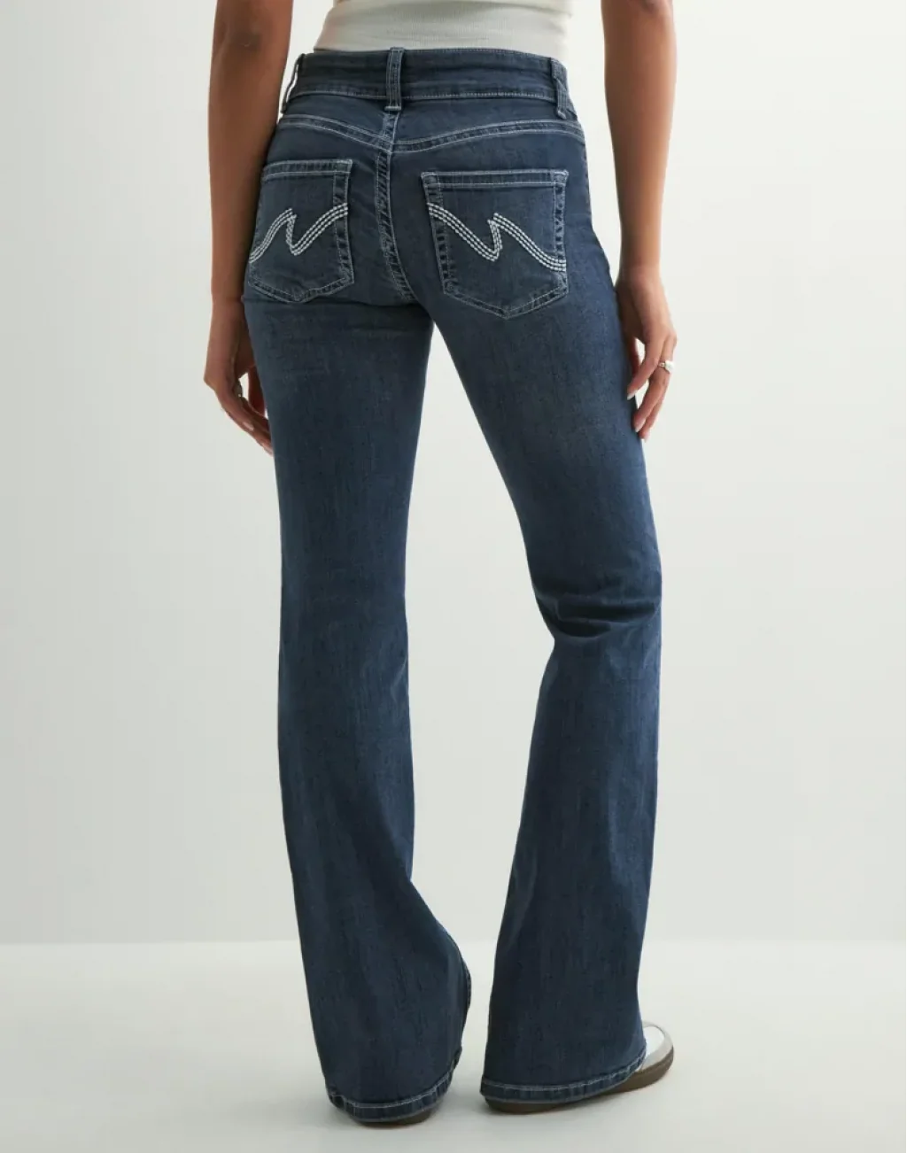 Klasik denim görünümünü modern hatlarla buluşturan bu düşük bel bootcut jean, zamansız bir siluet sunar. Vücudu saran formu, yüksek pamuk oranlı likralı kumaşı sayesinde gün boyu rahatlık sağlarken aynı zamanda toparlayıcı bir etki yaratır.