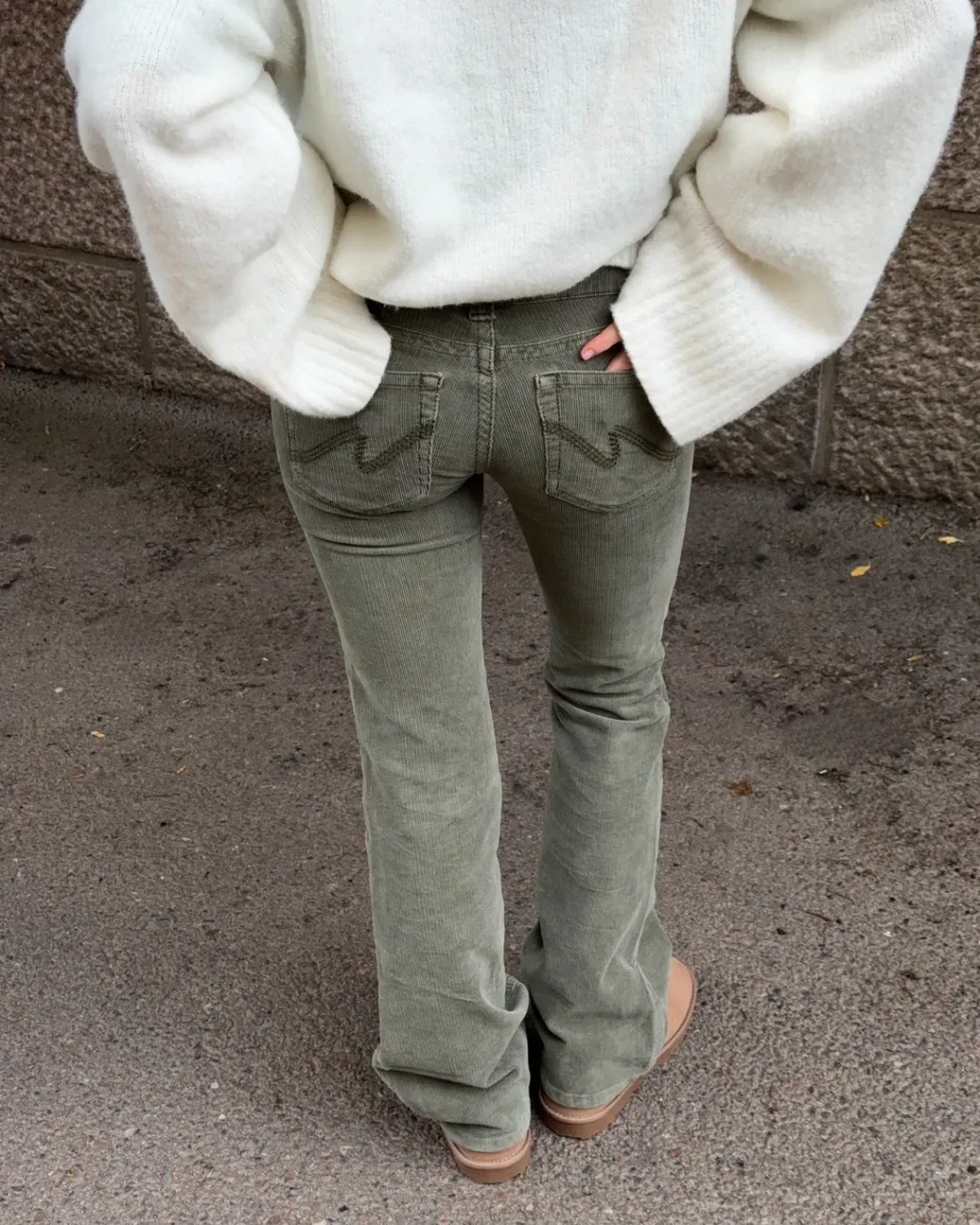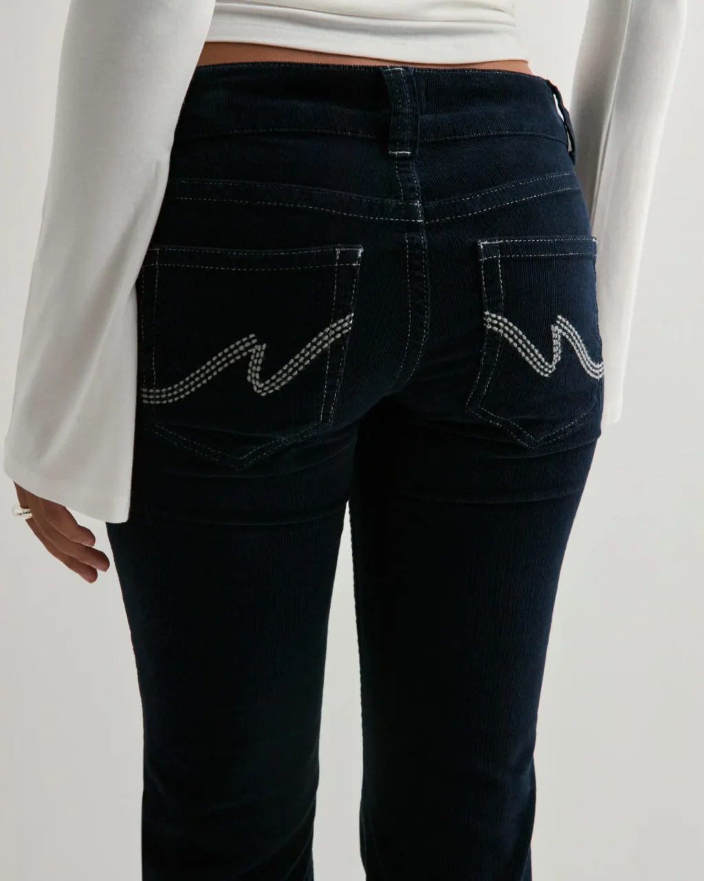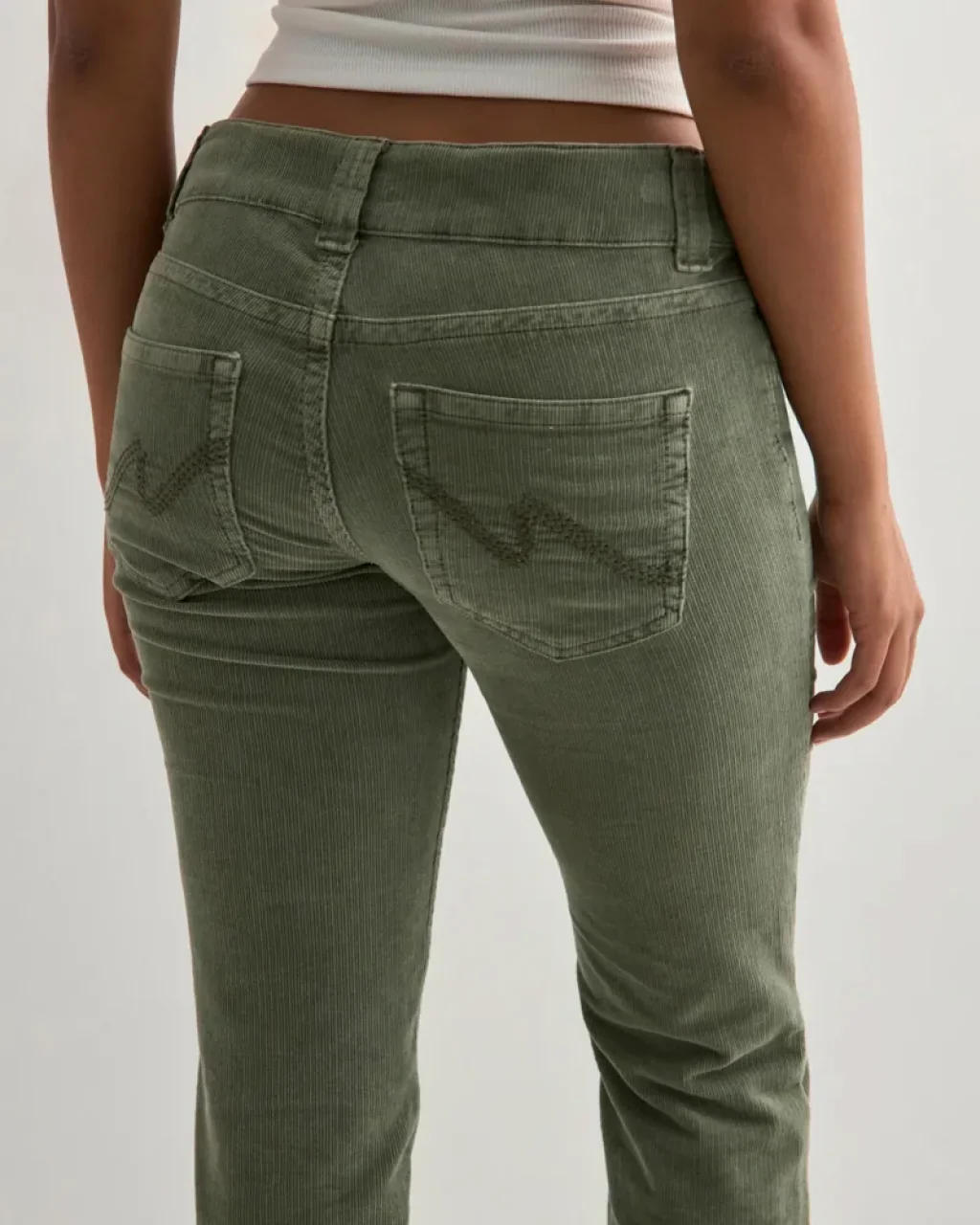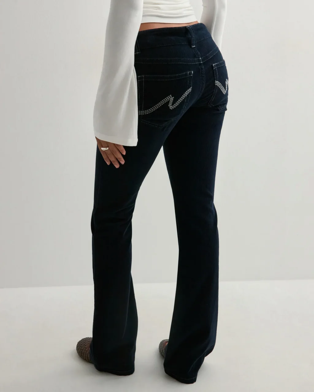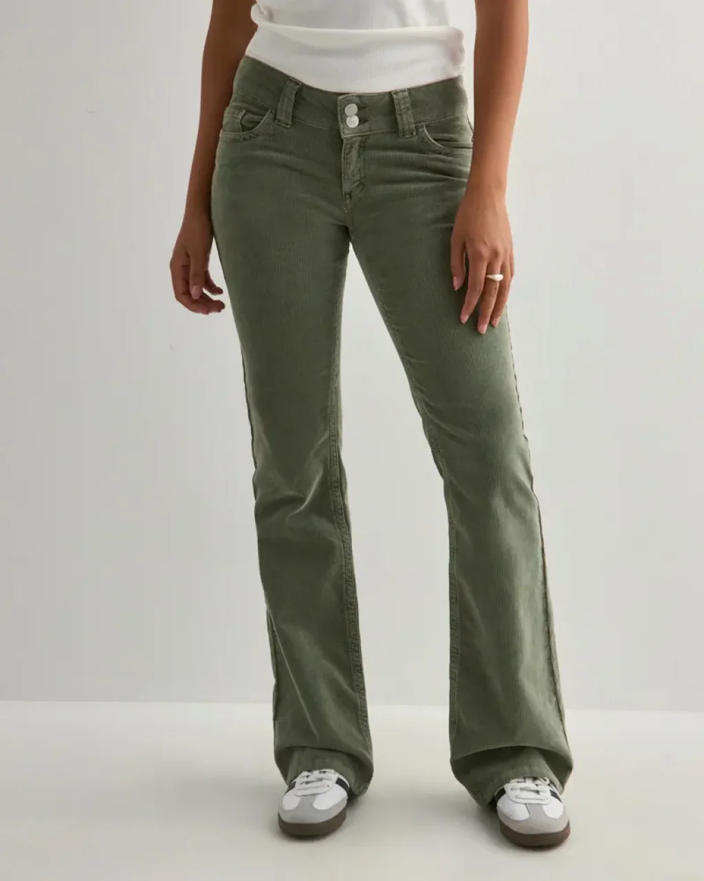 Bej kadife düşük bel bootcut pantolon, 2000’ler estetiğini modern bir yorumla sunan Mokşa’nın yeni sezon favorilerindendir. Kadife kumaşın tok ve pürüzsüz dokusu, bacak hattını vurgularken aynı zamanda zarif bir parlaklık kazandırır.