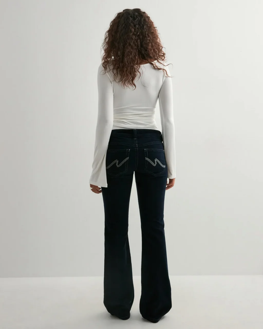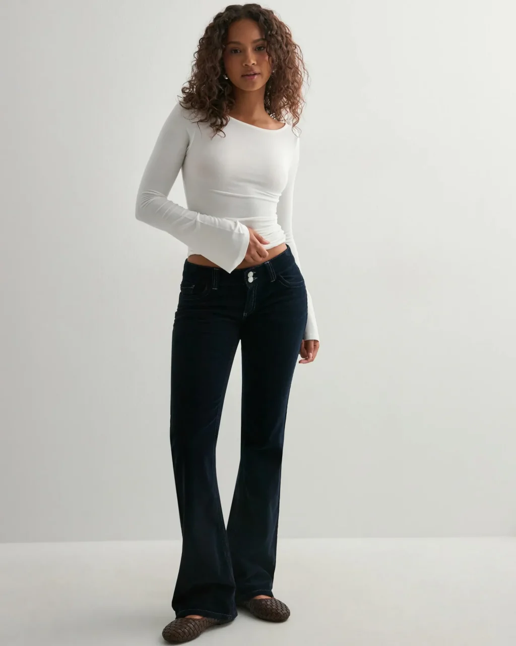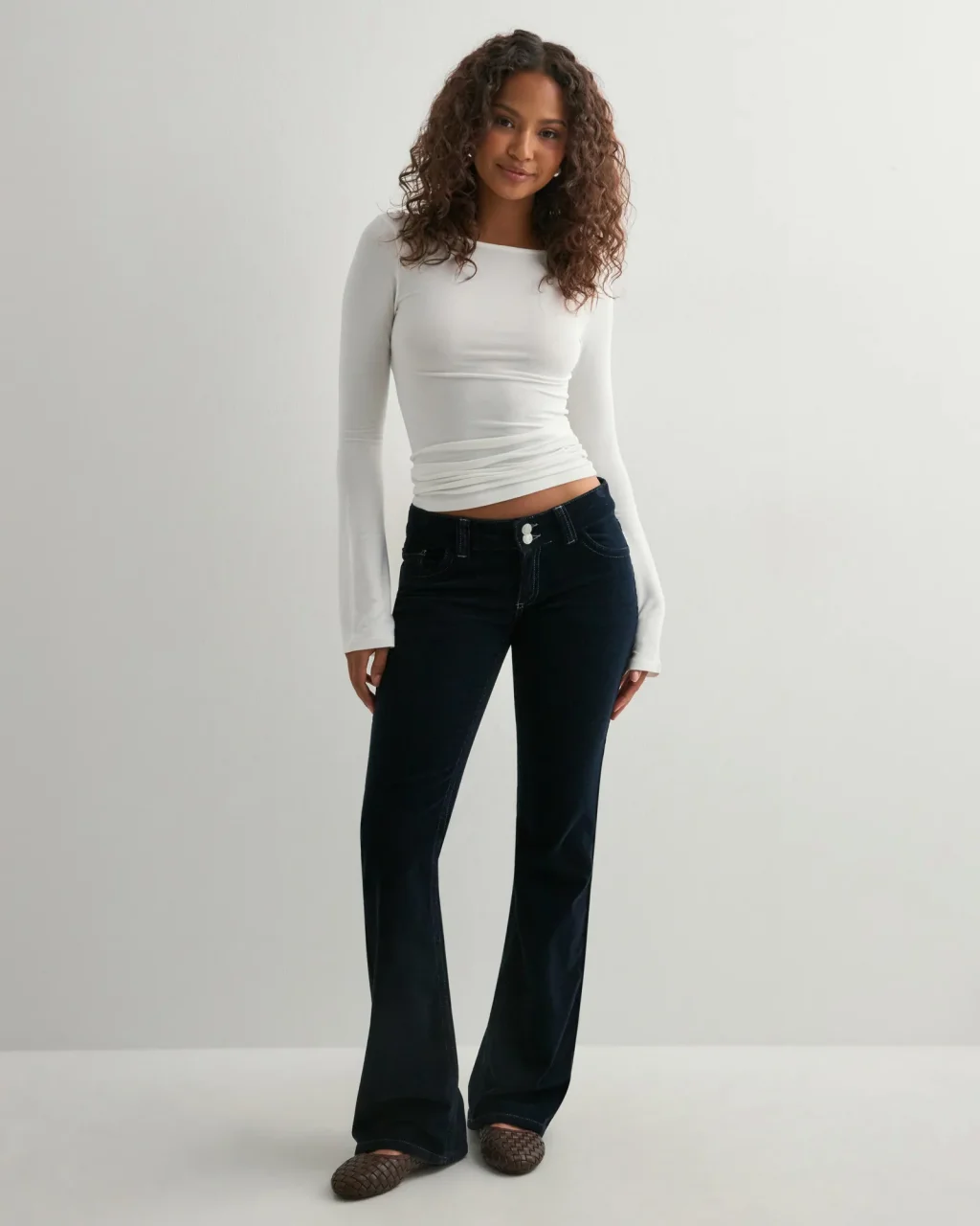 Düşük bel formu beli zarifçe ortaya çıkarır,