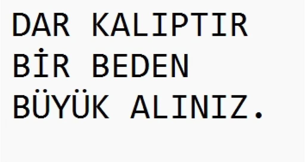 ⚠️ Kalıp Bilgisi: Dar kalıptır. Esneme payı yoktur.