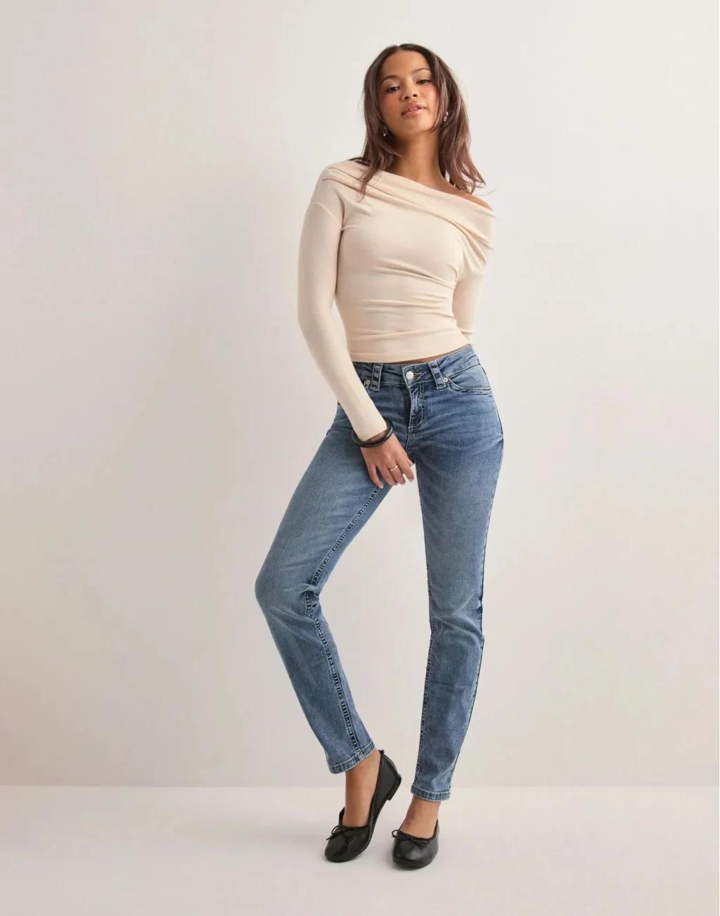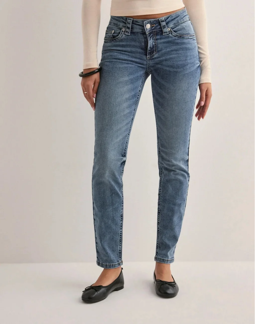 Bu düşük bel slim fit jean pantolon, hem şık hem de rahat bir kombin için üst olarak basic tişörtler, bluzlar ya da kazaklarla mükemmel uyum sağlar. Günlük stilinizi tamamlamak için spor ayakkabılar ya da botlarla rahatça kombinleyebilirsiniz.