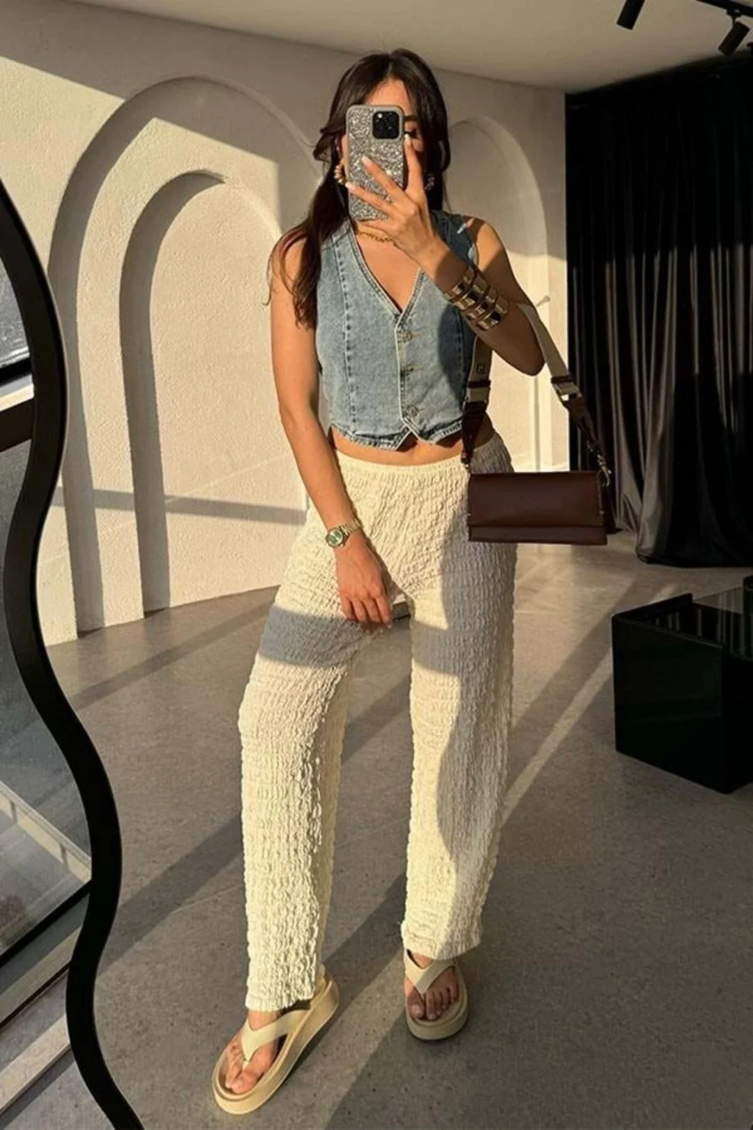 SB Düşük Bel Geniş Paça Kot Pantolon