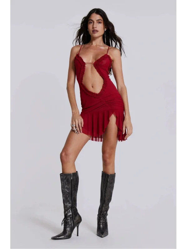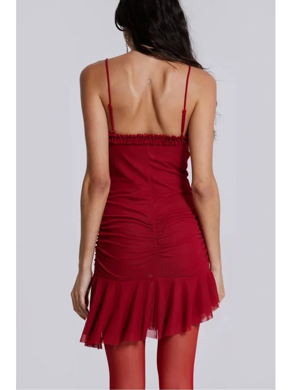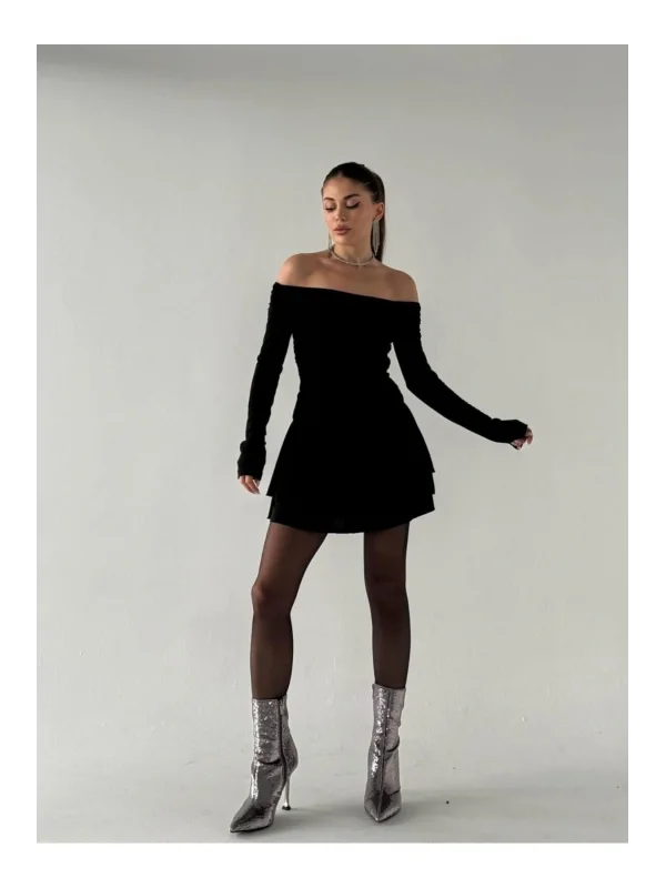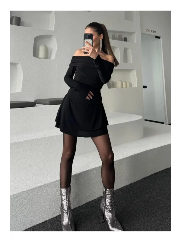 JL Dekolteli Fırfırlı Mini Elbise