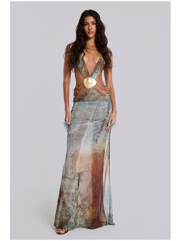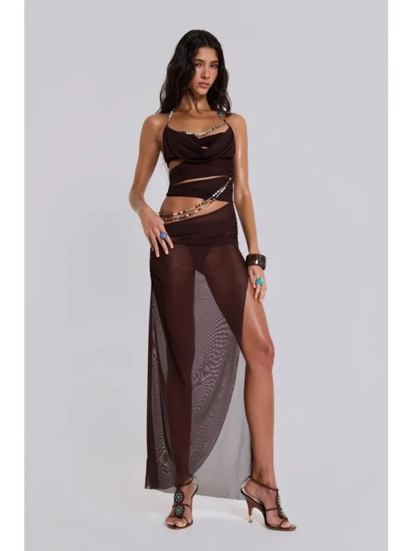 y2k Boncuk Detaylı Uzun Elbise JL