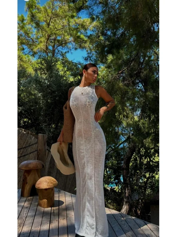 y2k Transparan Uzun Elbise