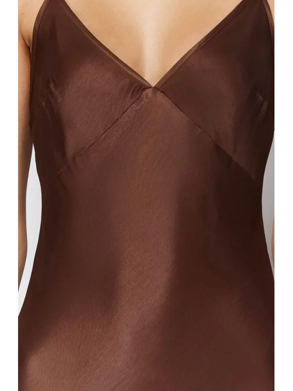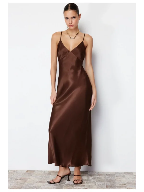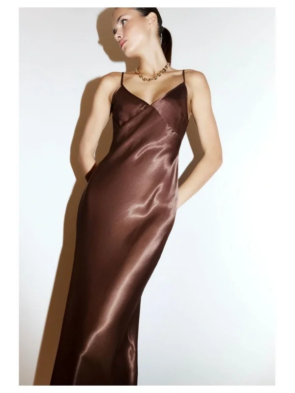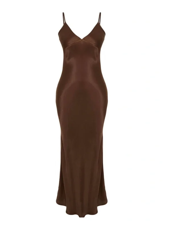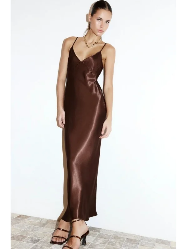 y2k İp Askılı Fit Saten Elbise