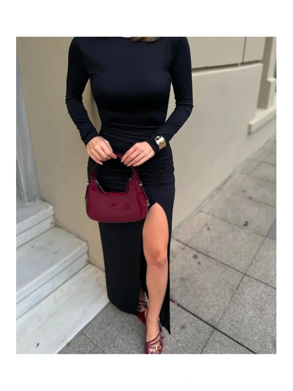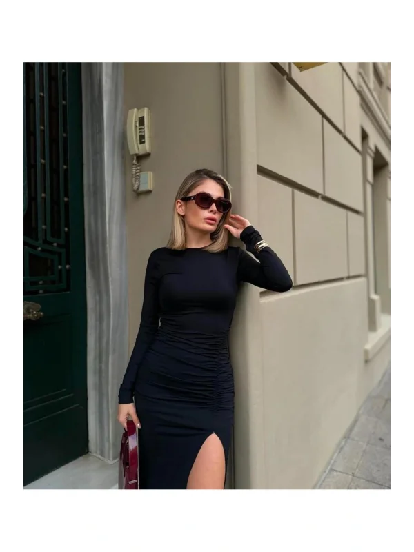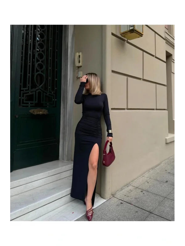 Uzun Yırtmaçlı Drape Elbise