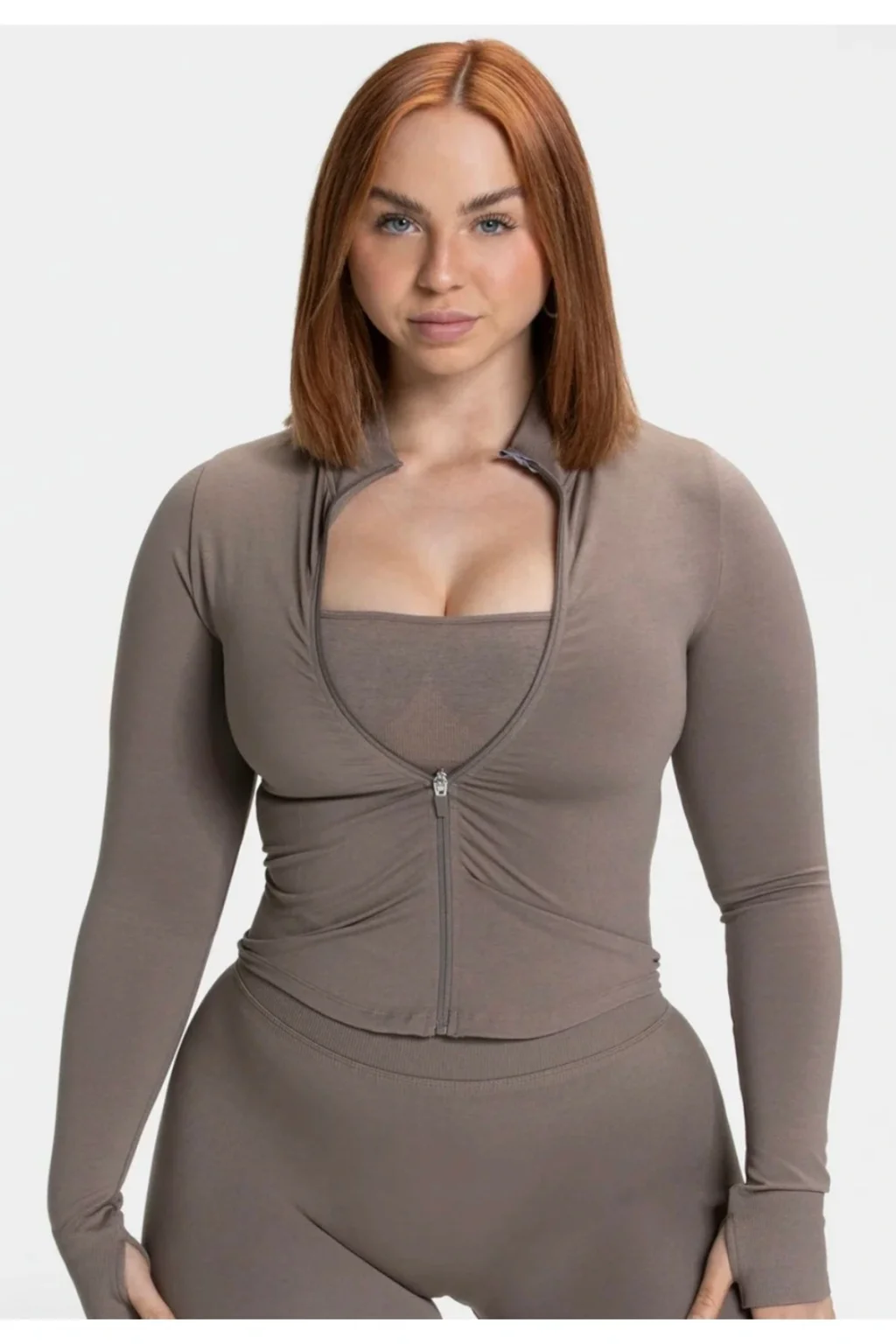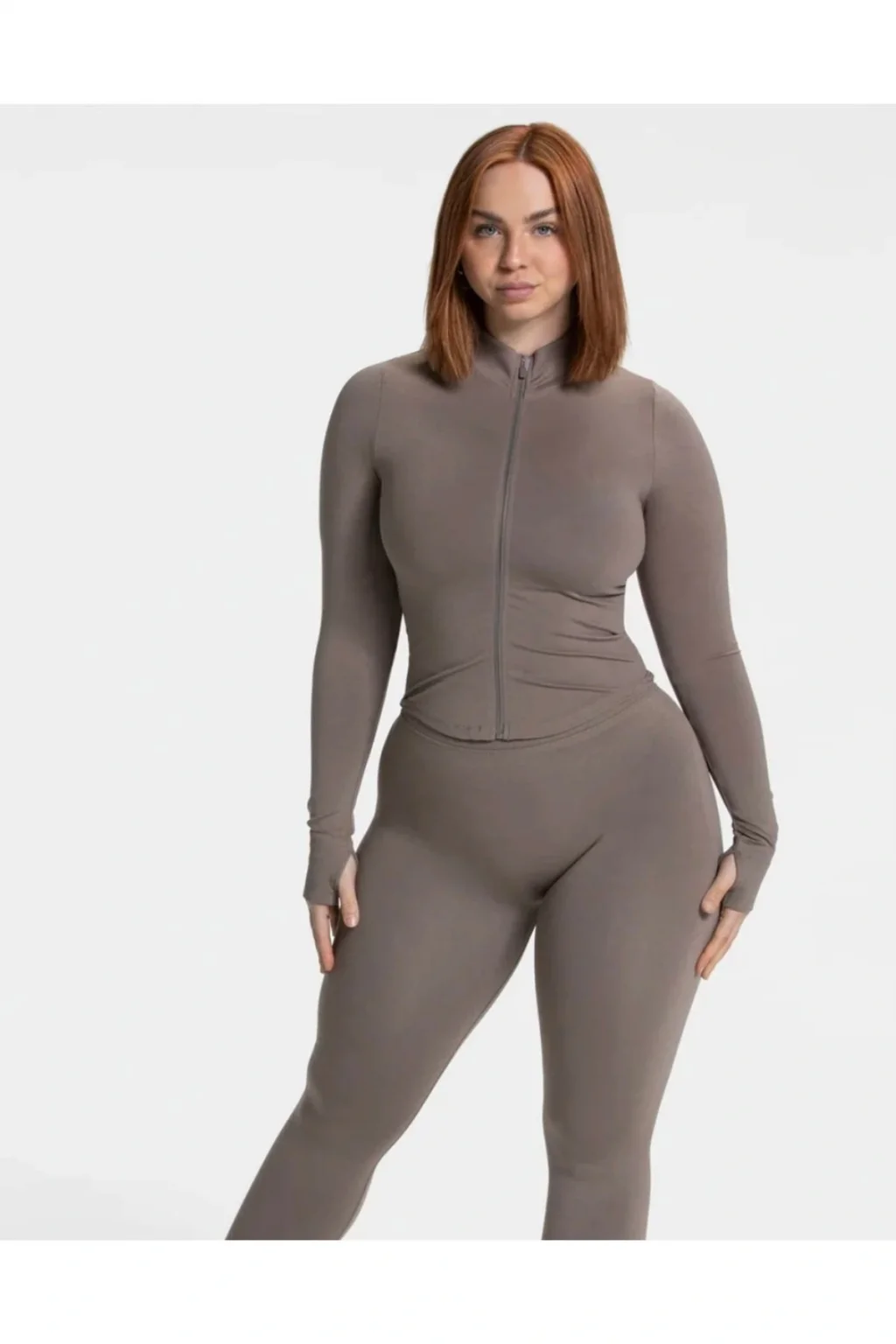 Kadın Siyah Korse Formlu Airbrush Etkili Tam Fermuarlı Atletik Fit Destekli Spor Ceket
