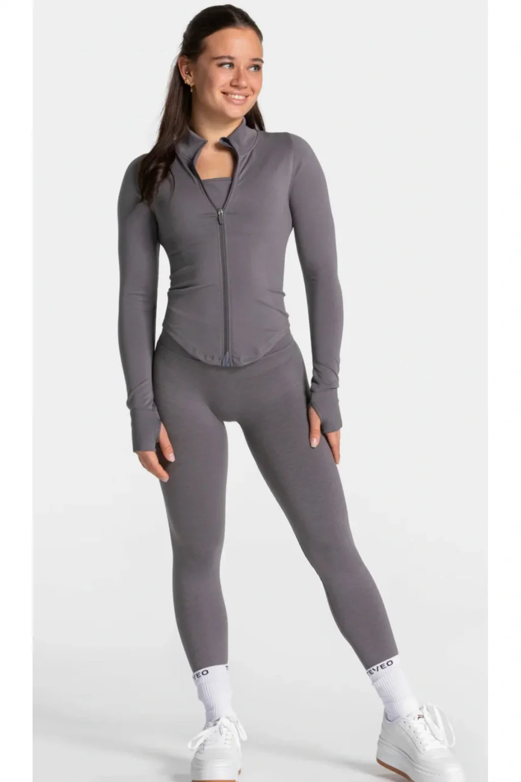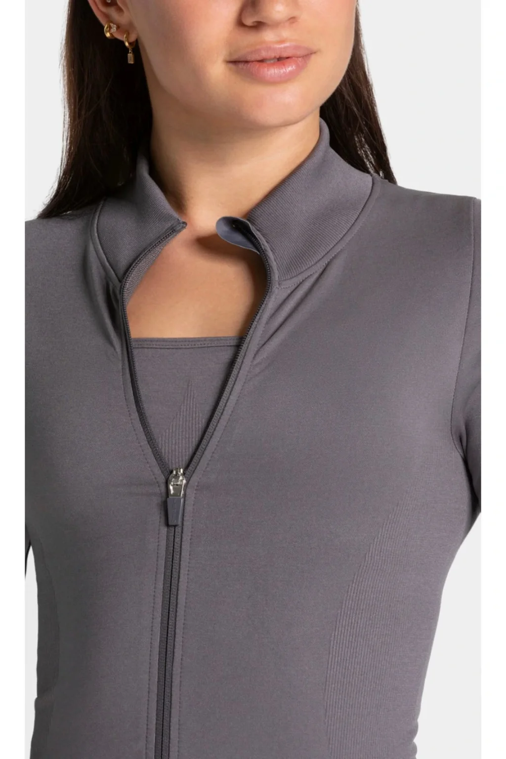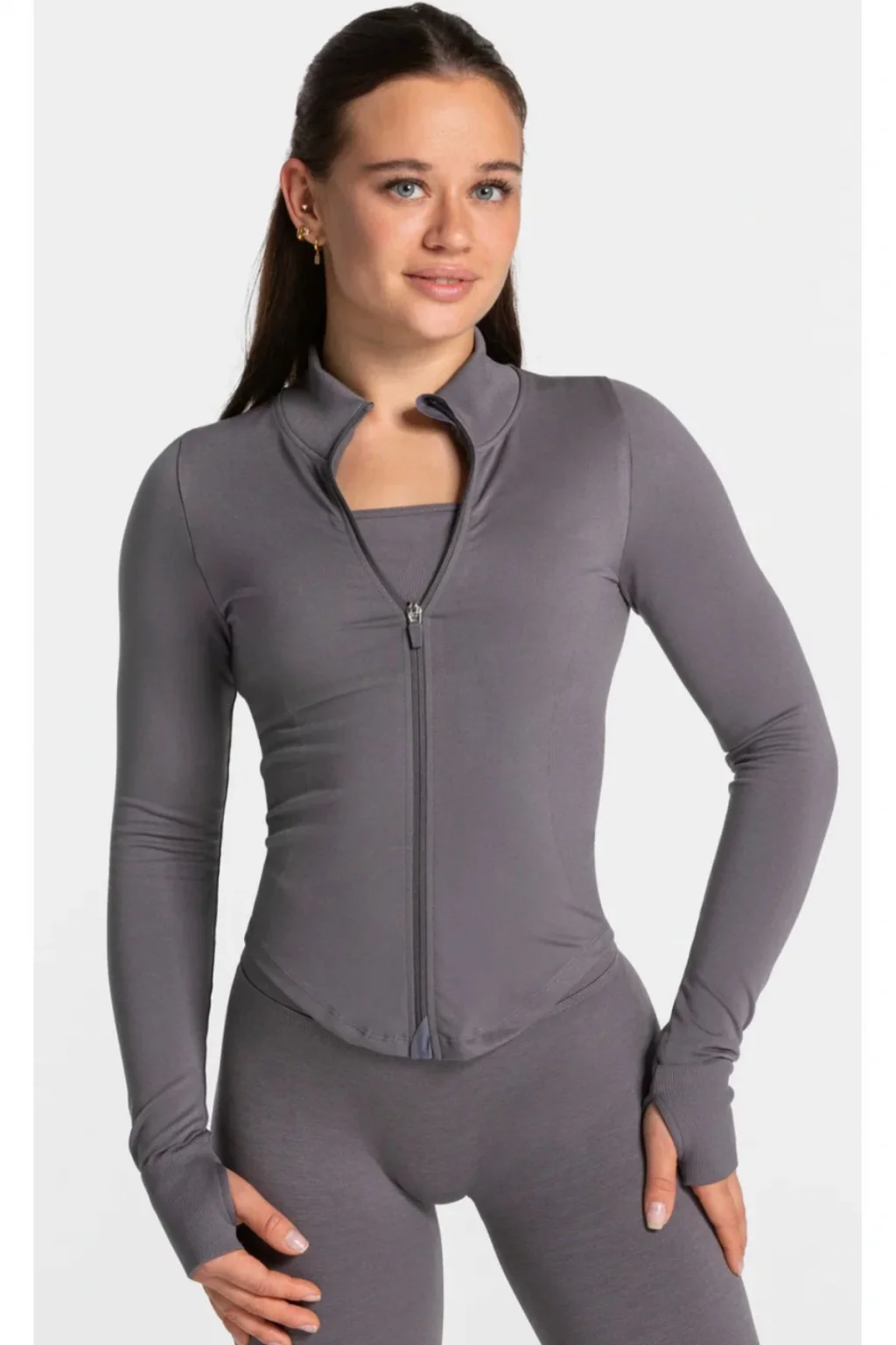 Kadın Siyah Korse Formlu Airbrush Etkili Tam Fermuarlı Atletik Fit Destekli Spor Ceket